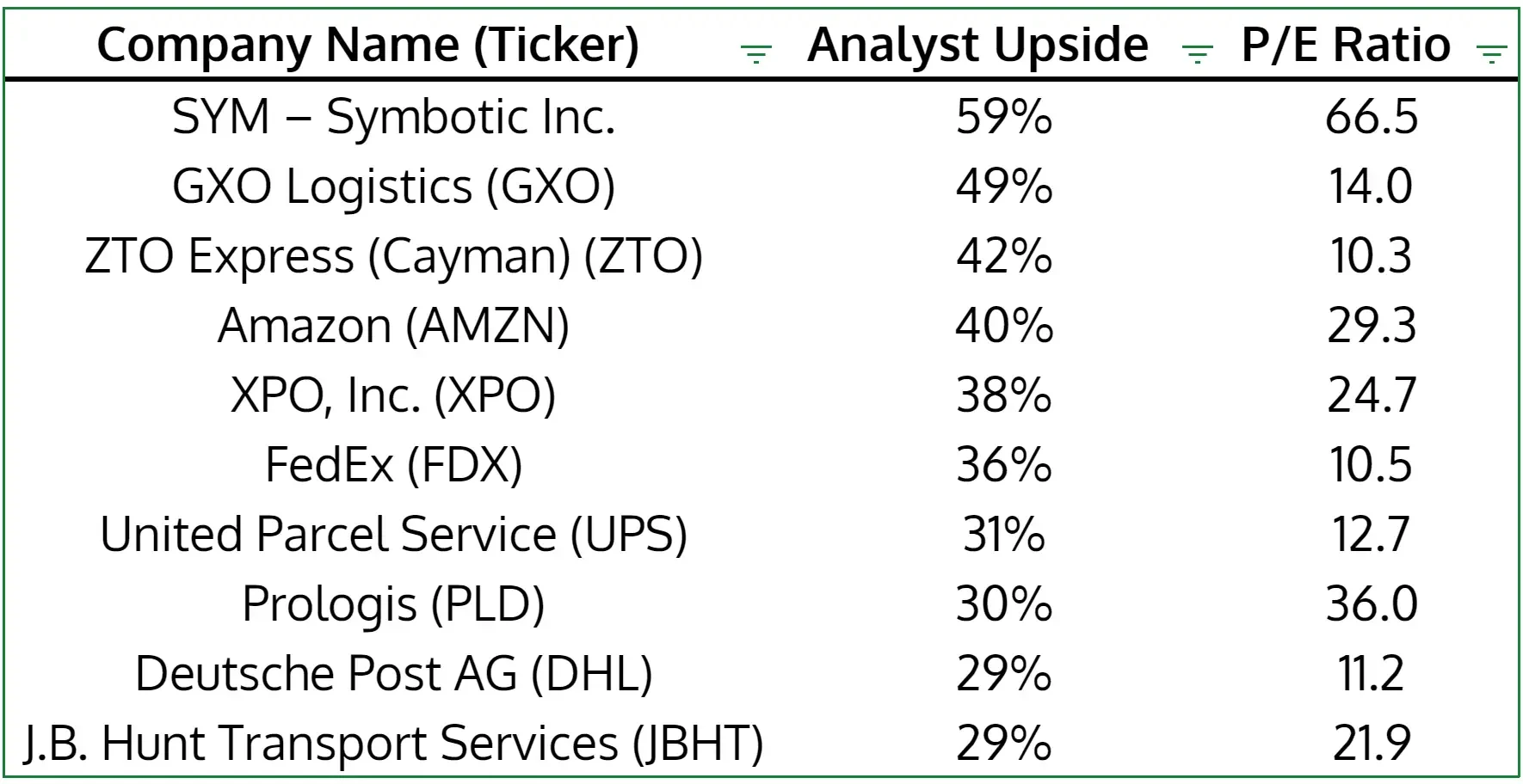10 E-Commerce Logistics Stocks