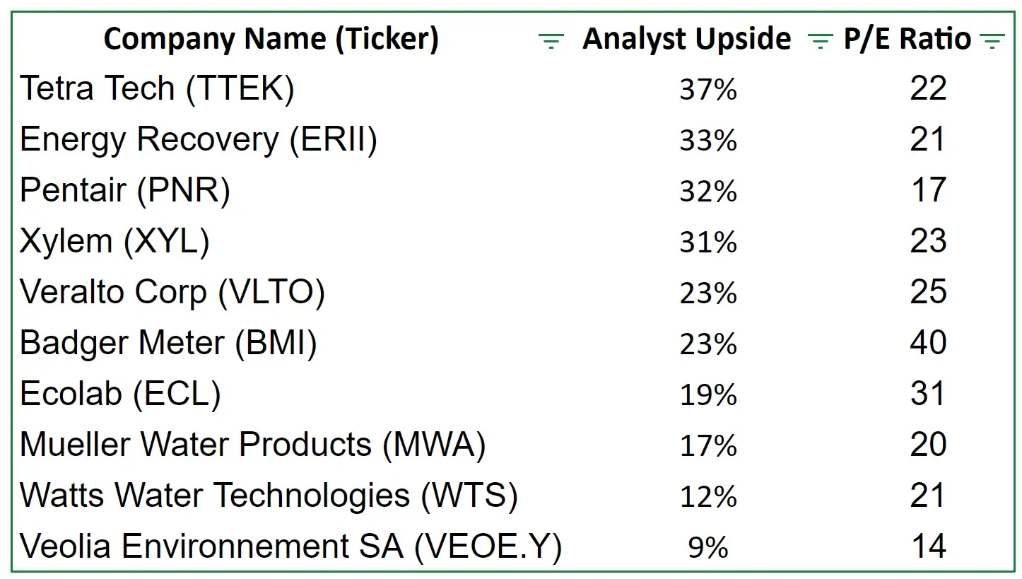 That means that companies providing desalination, leak detection, irrigation tech, water reuse, filtration, and infrastructure upgrades are expected to see growing demand over the next decade.