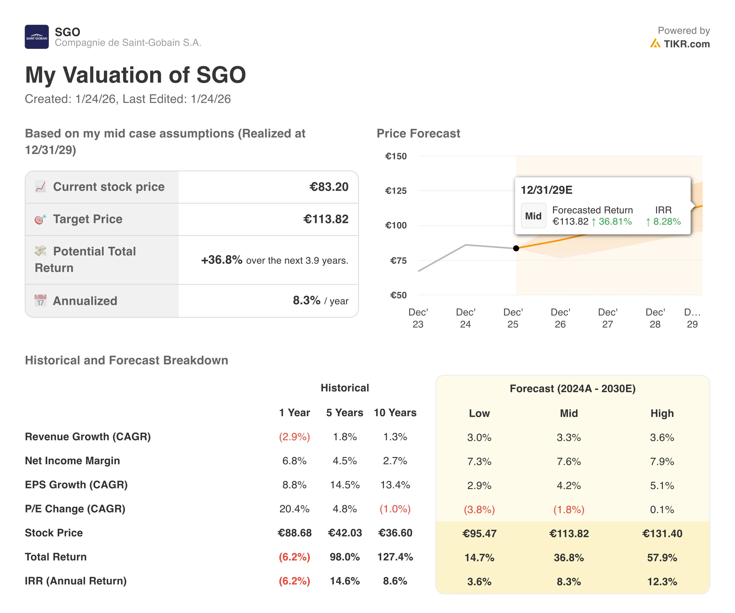 Here’s what we used for Saint-Gobain stock: