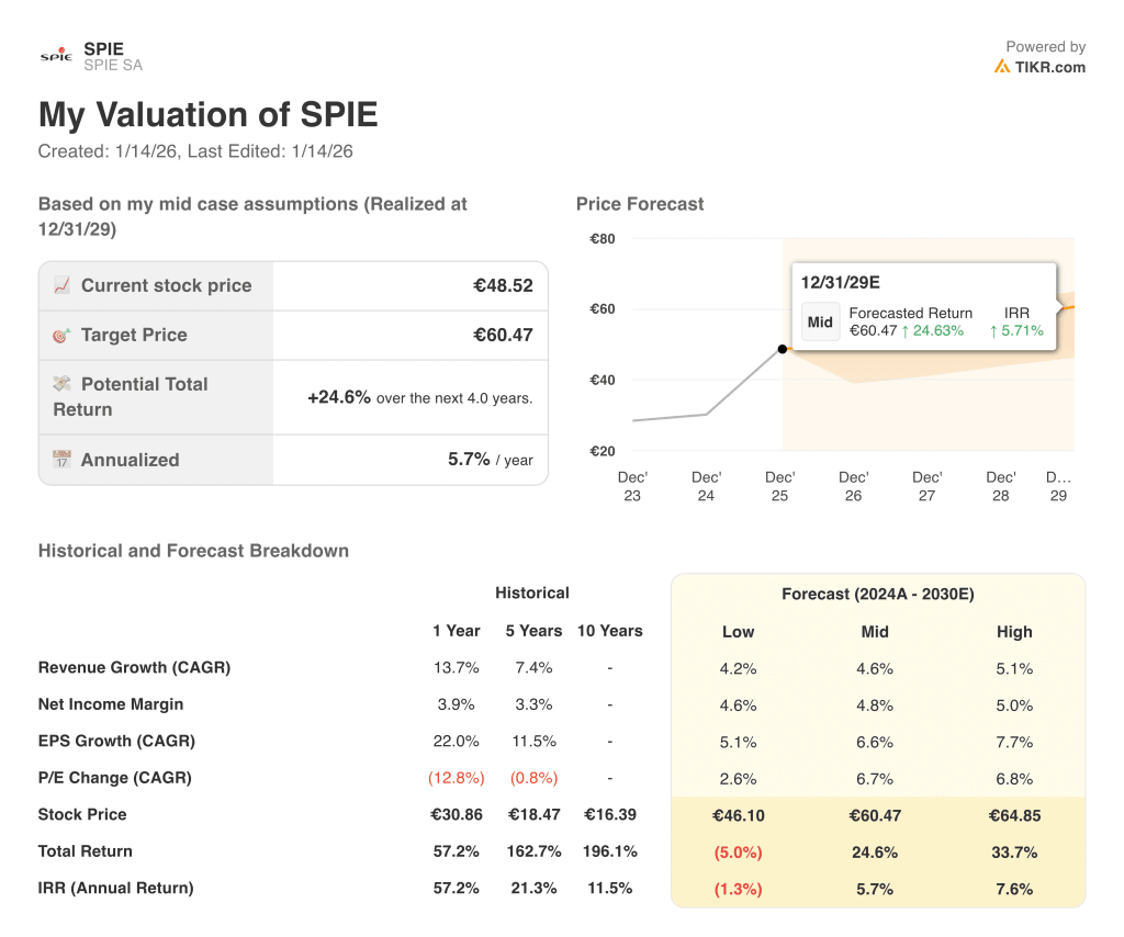 We analyzed the potential returns for SPIE stock using valuation assumptions anchored in its historical growth, profitability profile, and current trading multiple.