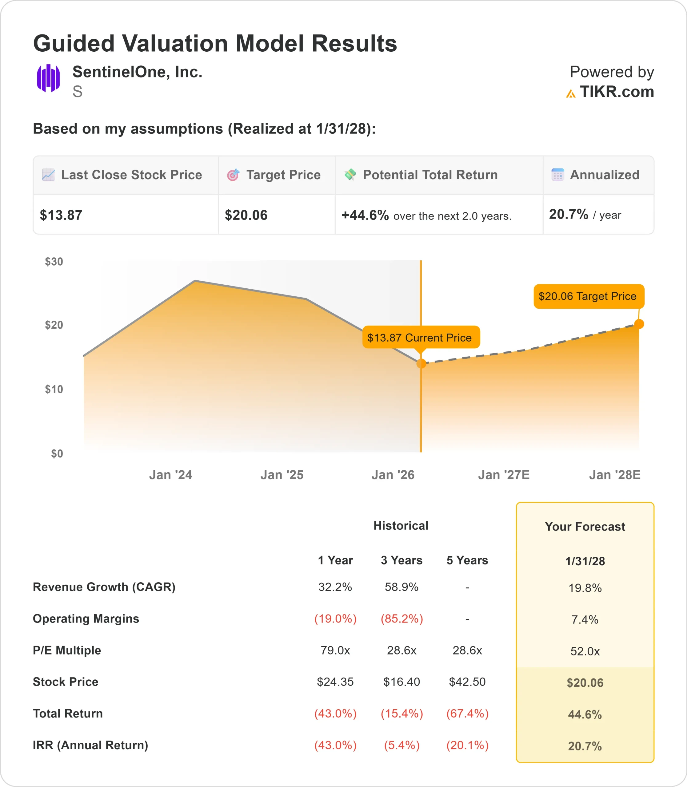 - Price Projection: Based on current execution, S stock could reach $20.06 by January 2028.