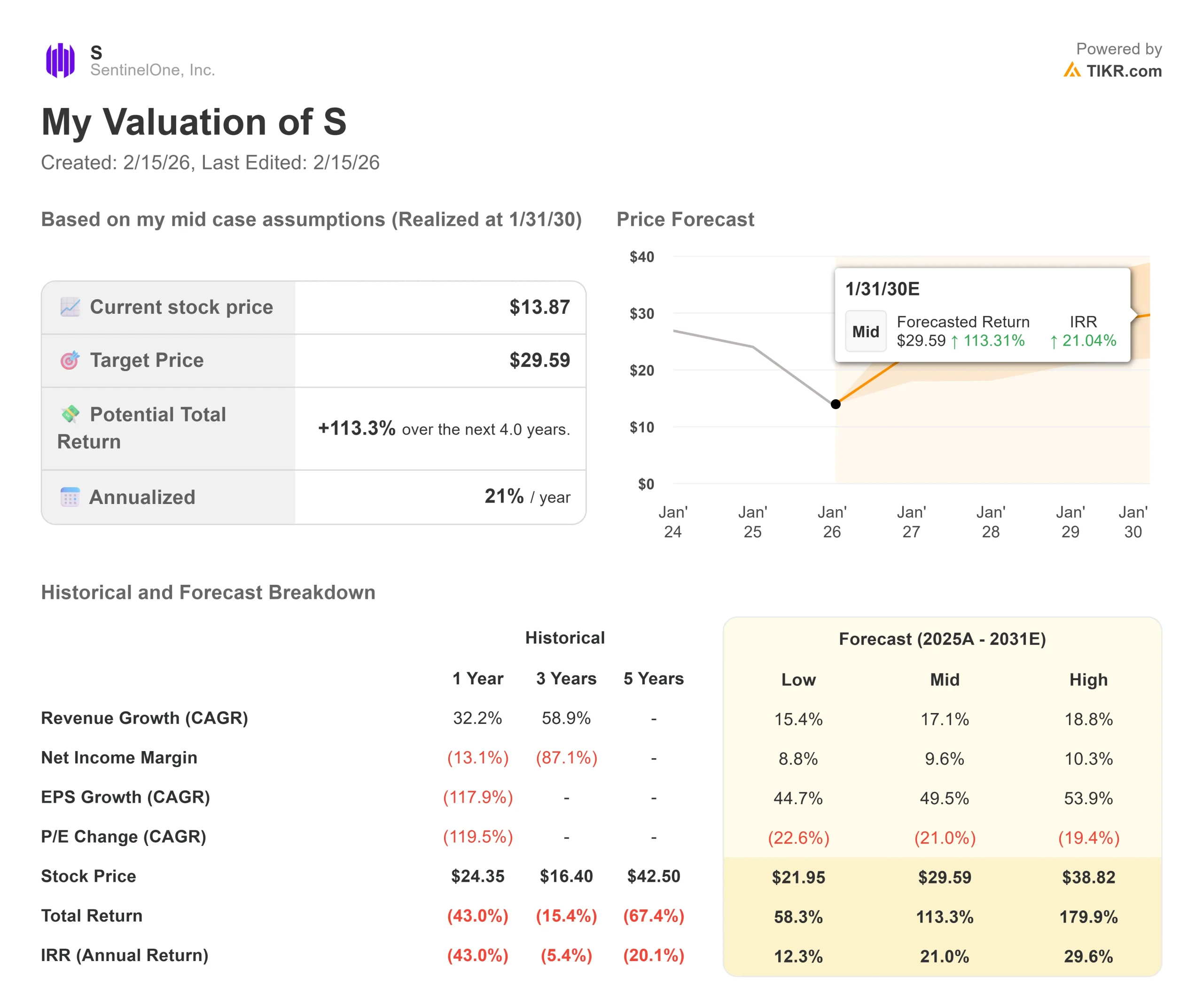 Here’s what we used for SentinelOne stock: