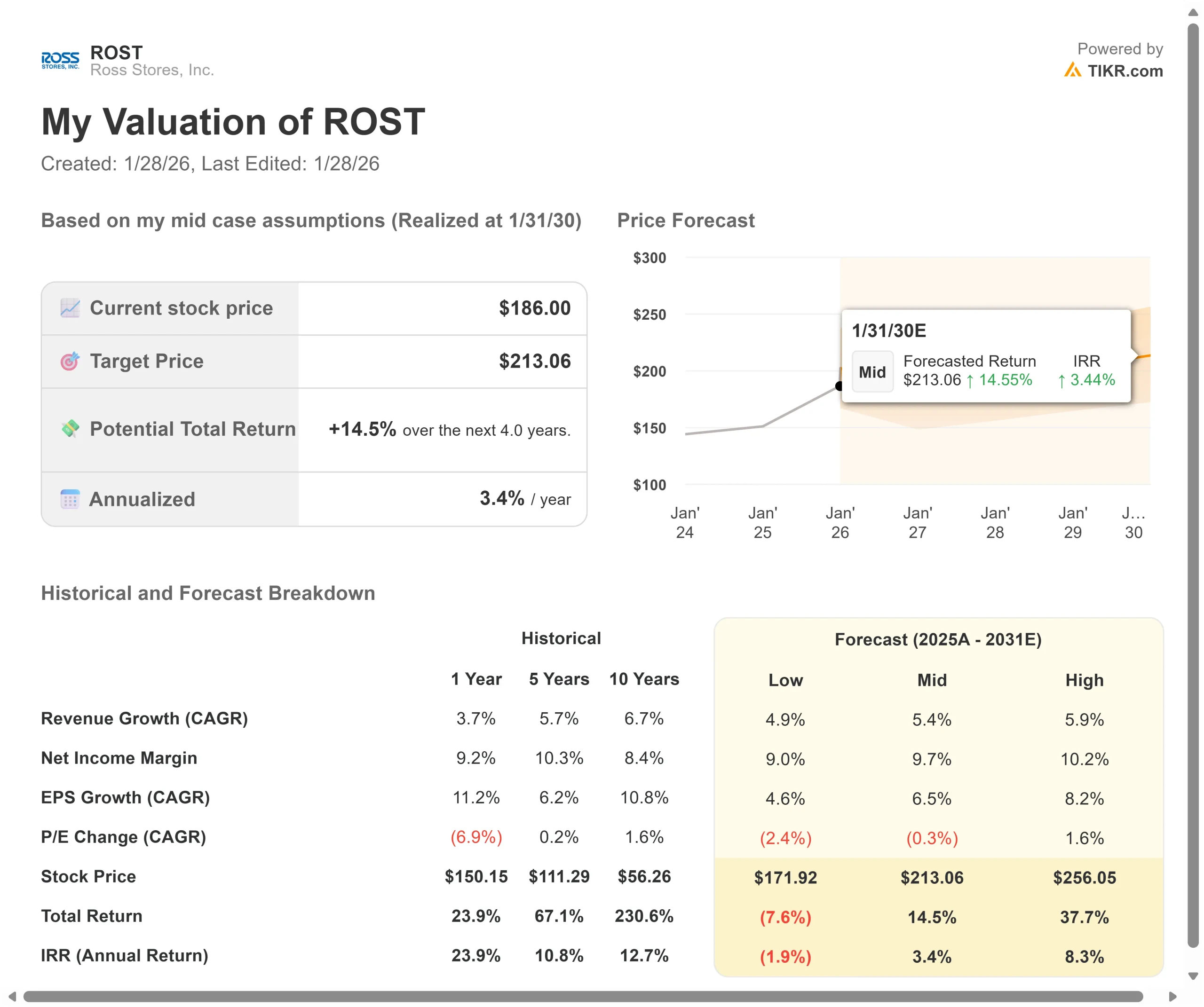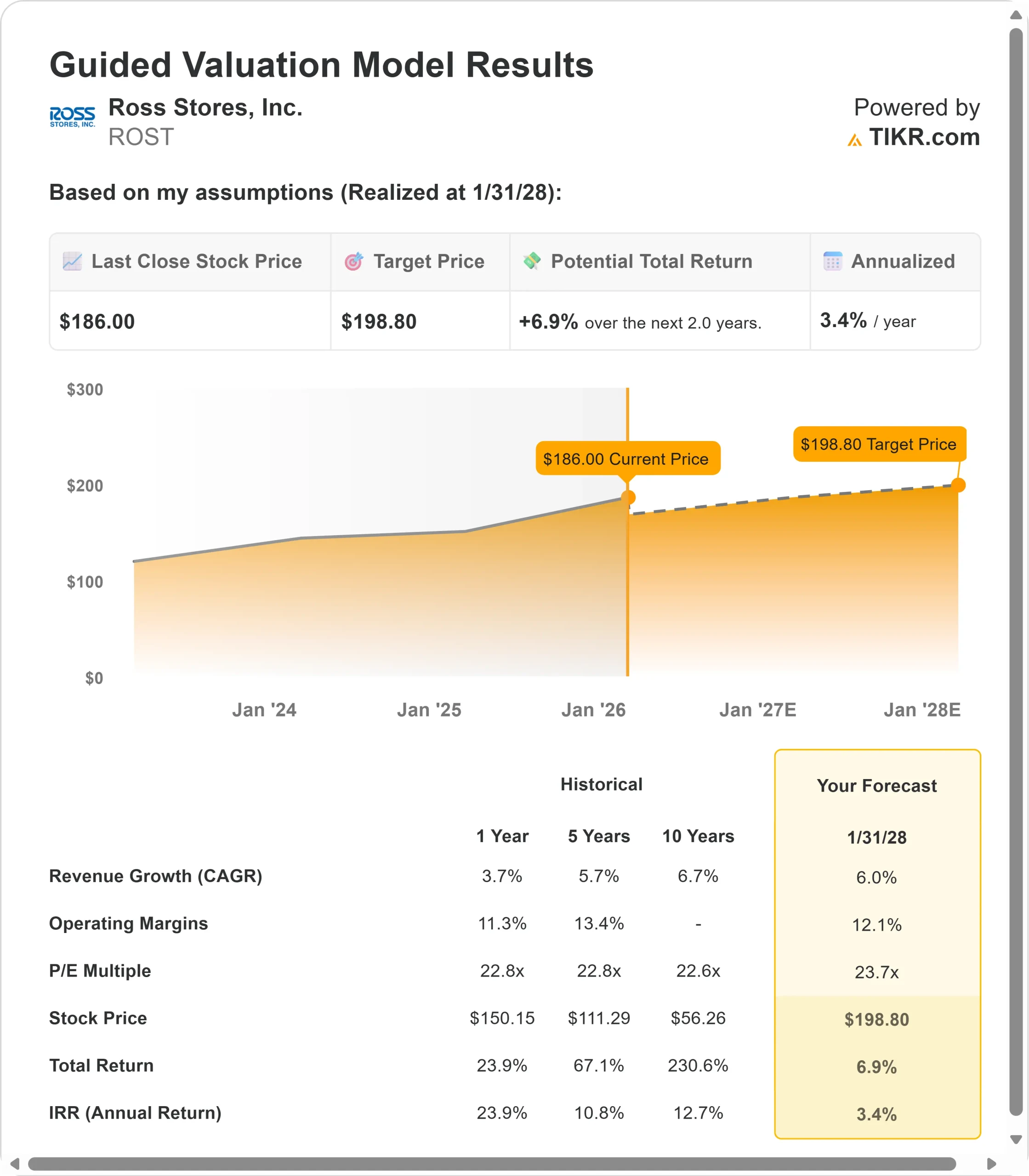 - Price Projection: Based on our assumptions, ROST stock could reach $199 by January 2028