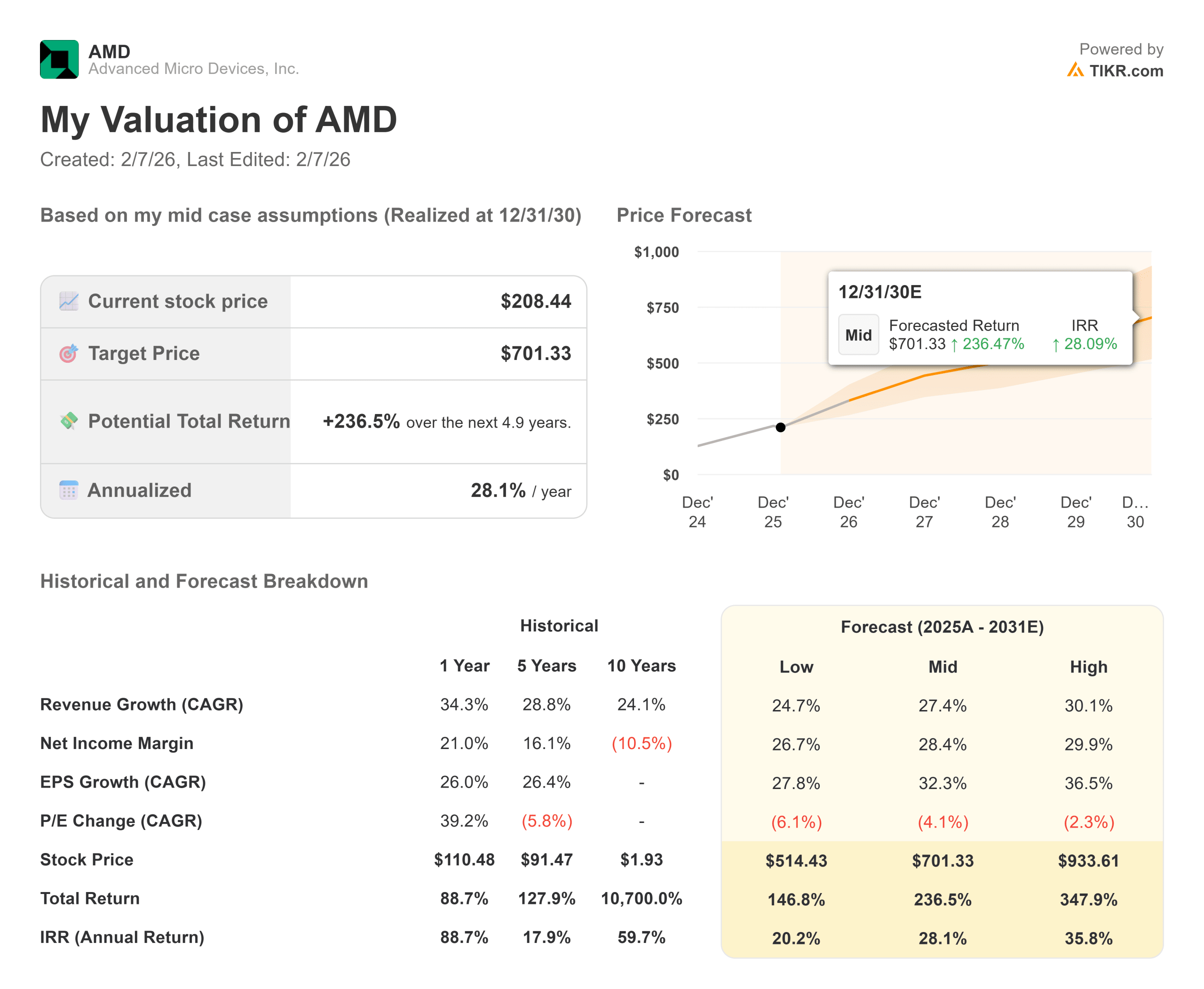 The model suggests that if AMD can achieve even a fraction of Nvidia’s margins, the stock is aggressively mispriced.