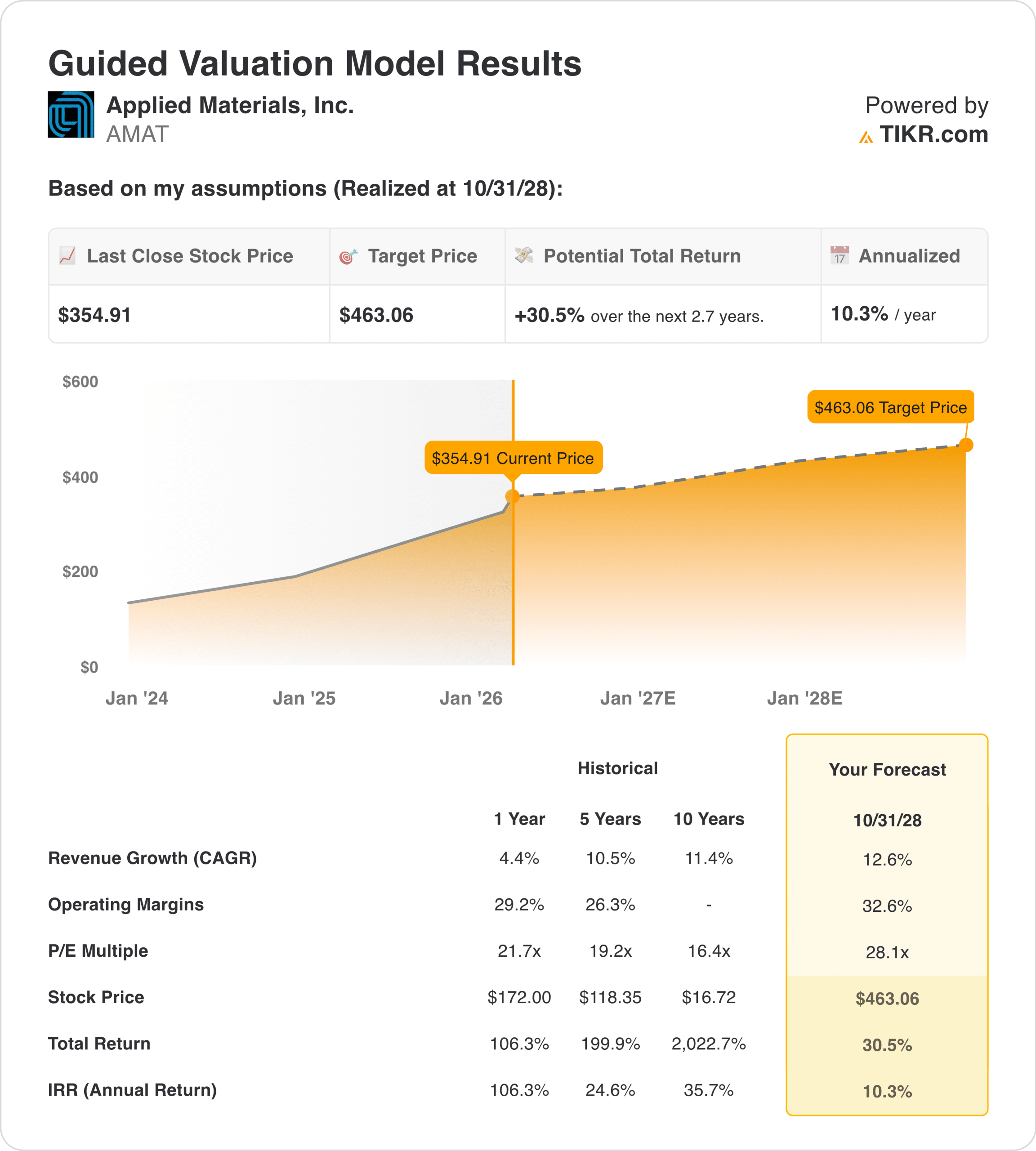 If you’re not sure what to enter, TIKR automatically fills in each input using analysts’ consensus estimates, giving you a quick, reliable starting point.