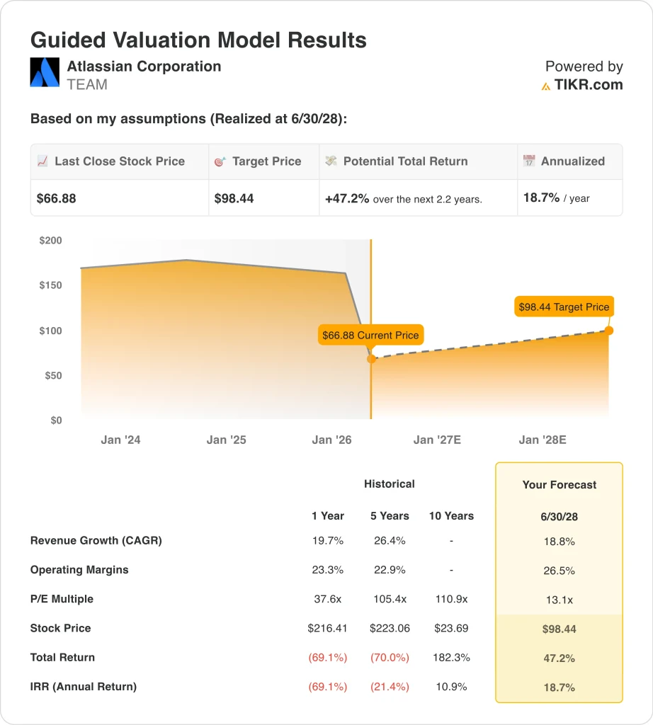 Value your favorite stocks like TEAM with 5 years of analysts’ forecasts using TIKR’s new Valuation Model (It’s free) >>>