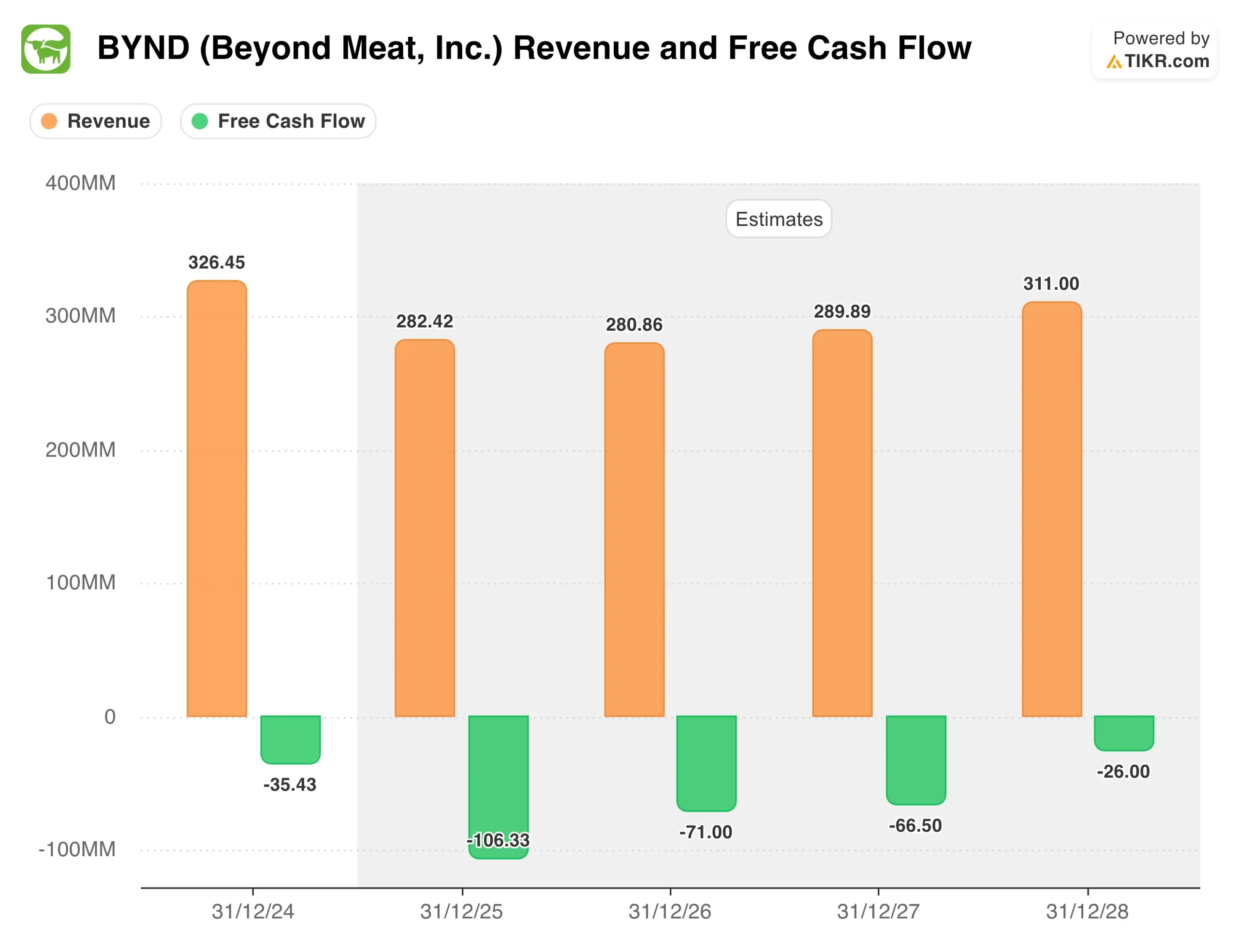 BYND stock has posted losses in each of the last five years. It fell 47% in 2021, 81% in 2022, 27% in 2023, 57% in 2024, and was down 3% in 2025 before this week’s rally. After soaring past $230 per share following its IPO, BYND is a penny stock in October 2025.