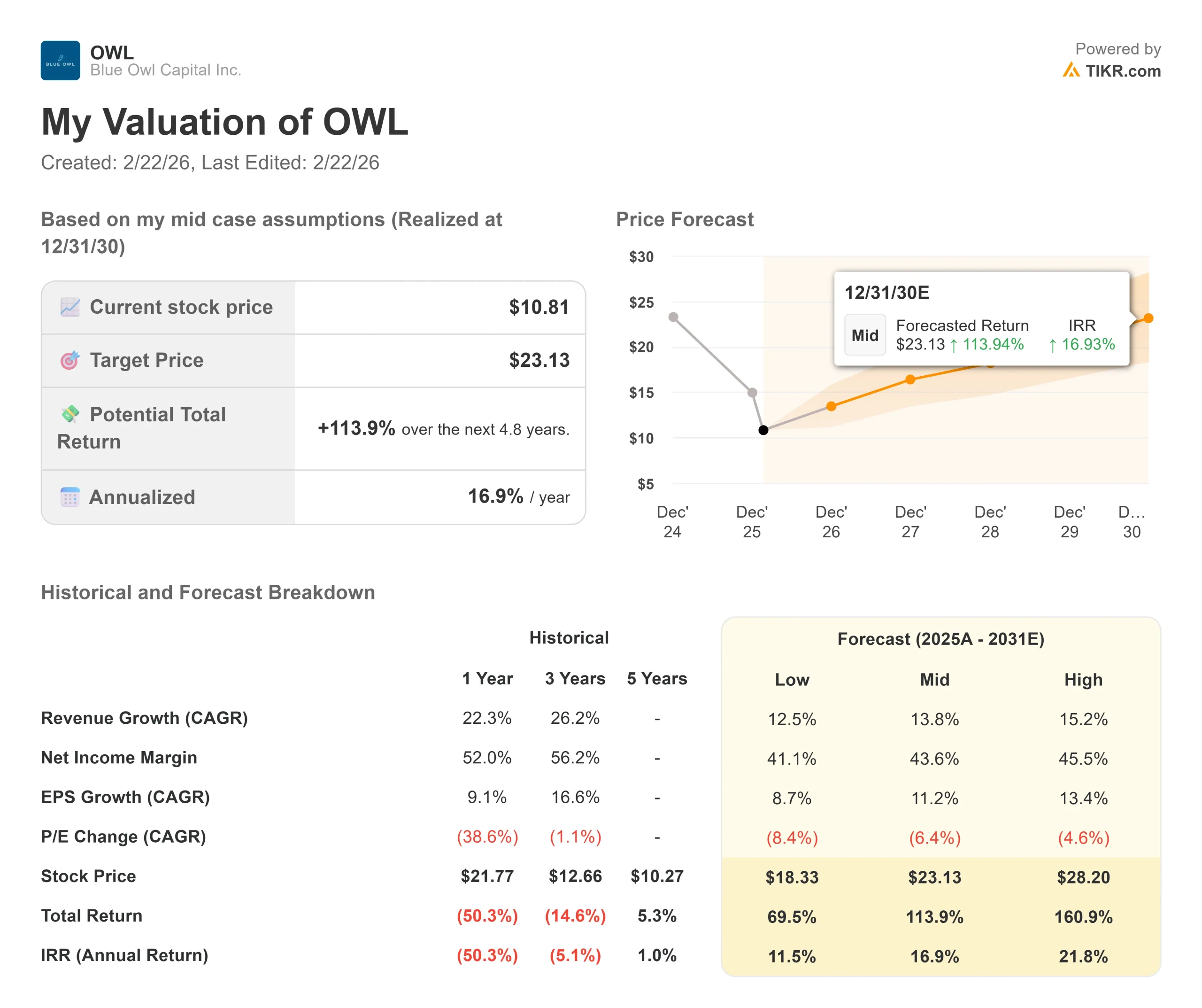 - $OWL Share Price as of Feb. 20: $11