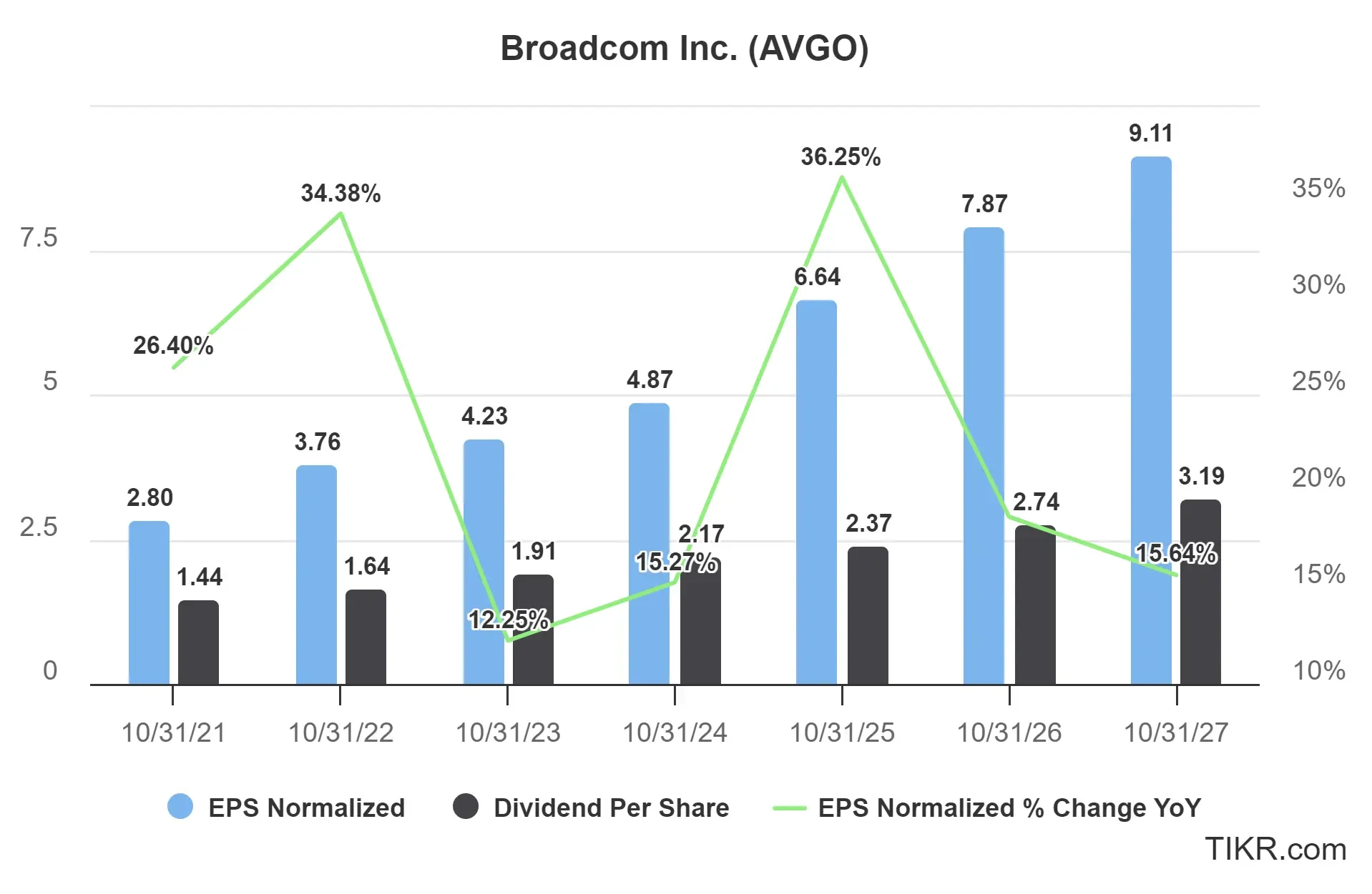Broadcom looks like a strong long-term dividend growth stock for investors who want steady income today and the potential for much more growth down the road.