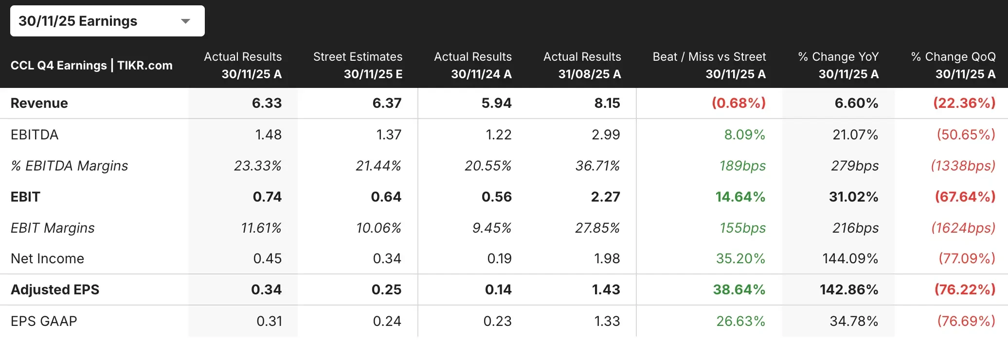 The cruise giant posted record net income of $2.8 billion for the full year, representing a massive 60% jump from 2024.