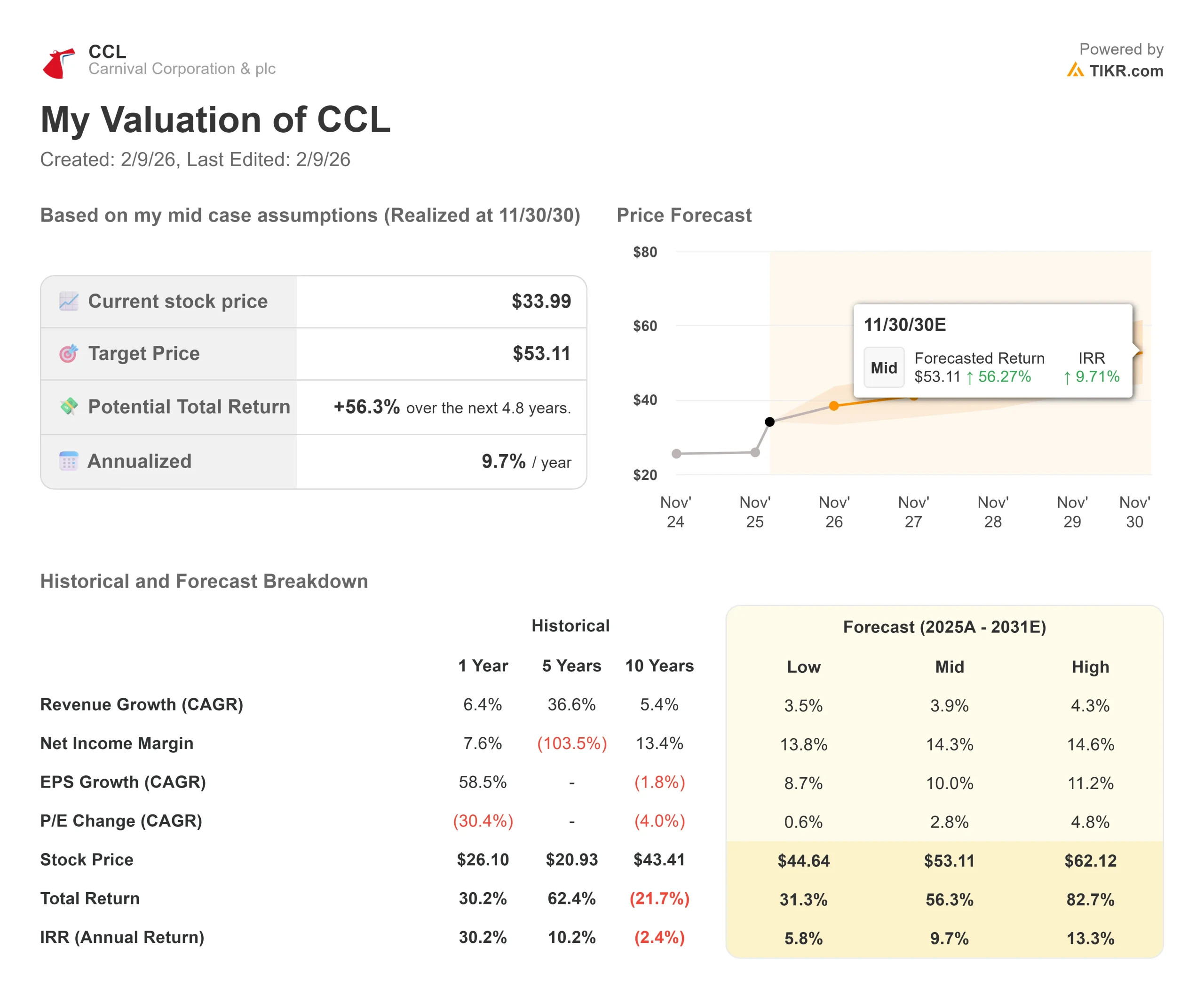 Conclusion: Full steam ahead. With a 56.3% upside potential to $53, Carnival Corporation offers a high-beta recovery play for investors who believe the cruise industry’s best days are still ahead.