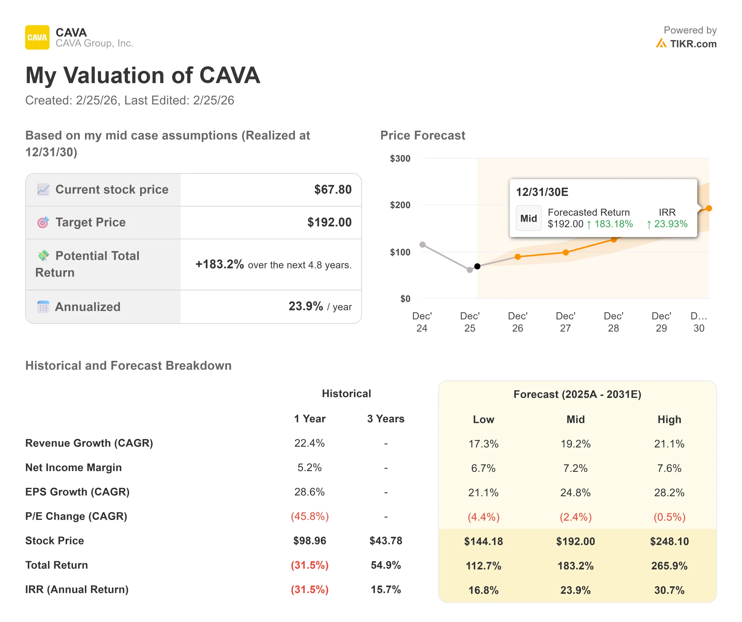 - Looking ahead, investors should watch whether Cava can maintain its momentum as it scales. The company expects restaurant-level margins between 23.7% and 24.2% in fiscal 2026, reflecting investments in field leadership and the margin impact from salmon.