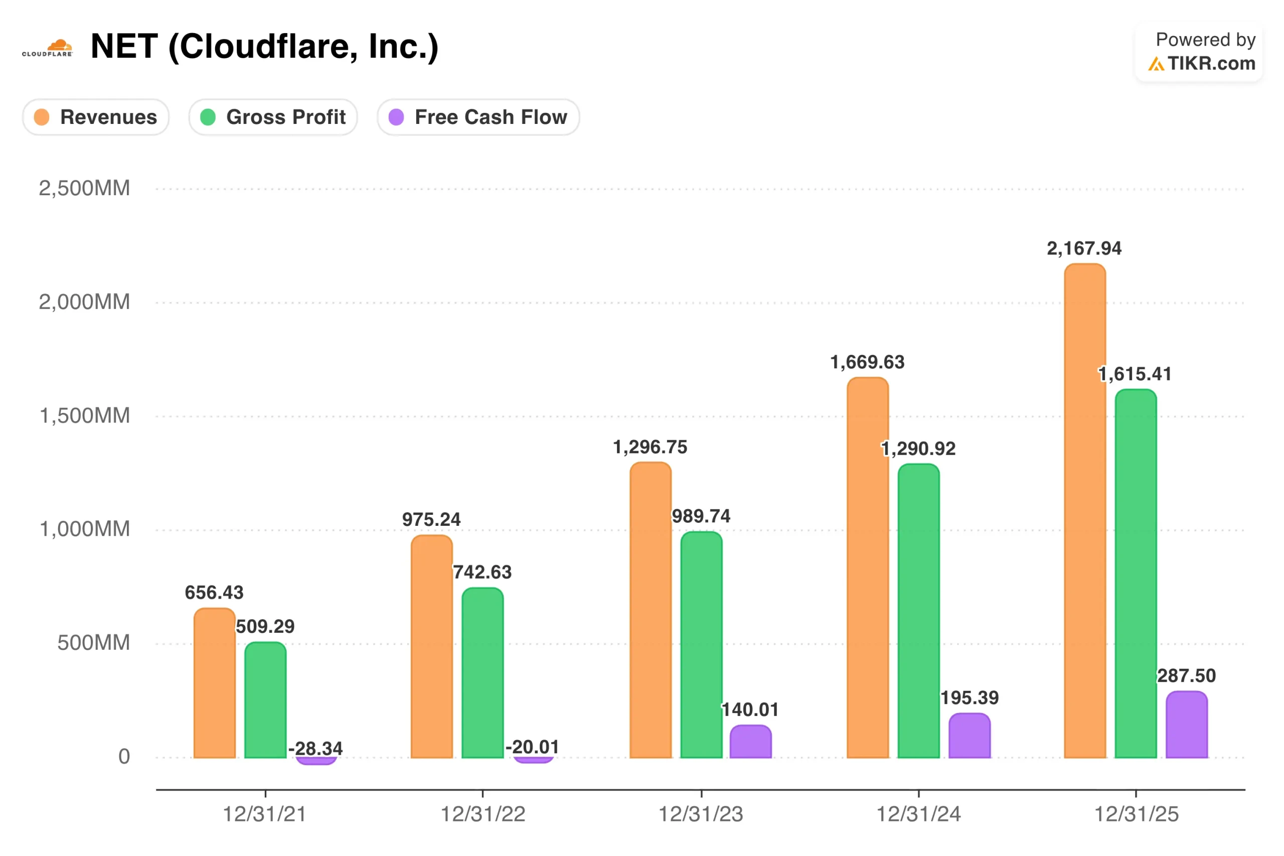 Balance sheet quality helps support the story. Cloudflare ended 2025 with about $4.1 billion in cash, cash equivalents, and available-for-sale securities, and it still held net cash of roughly $583 million. That liquidity gives the company room to keep investing in AI, security, and network capacity without near-term balance sheet stress.