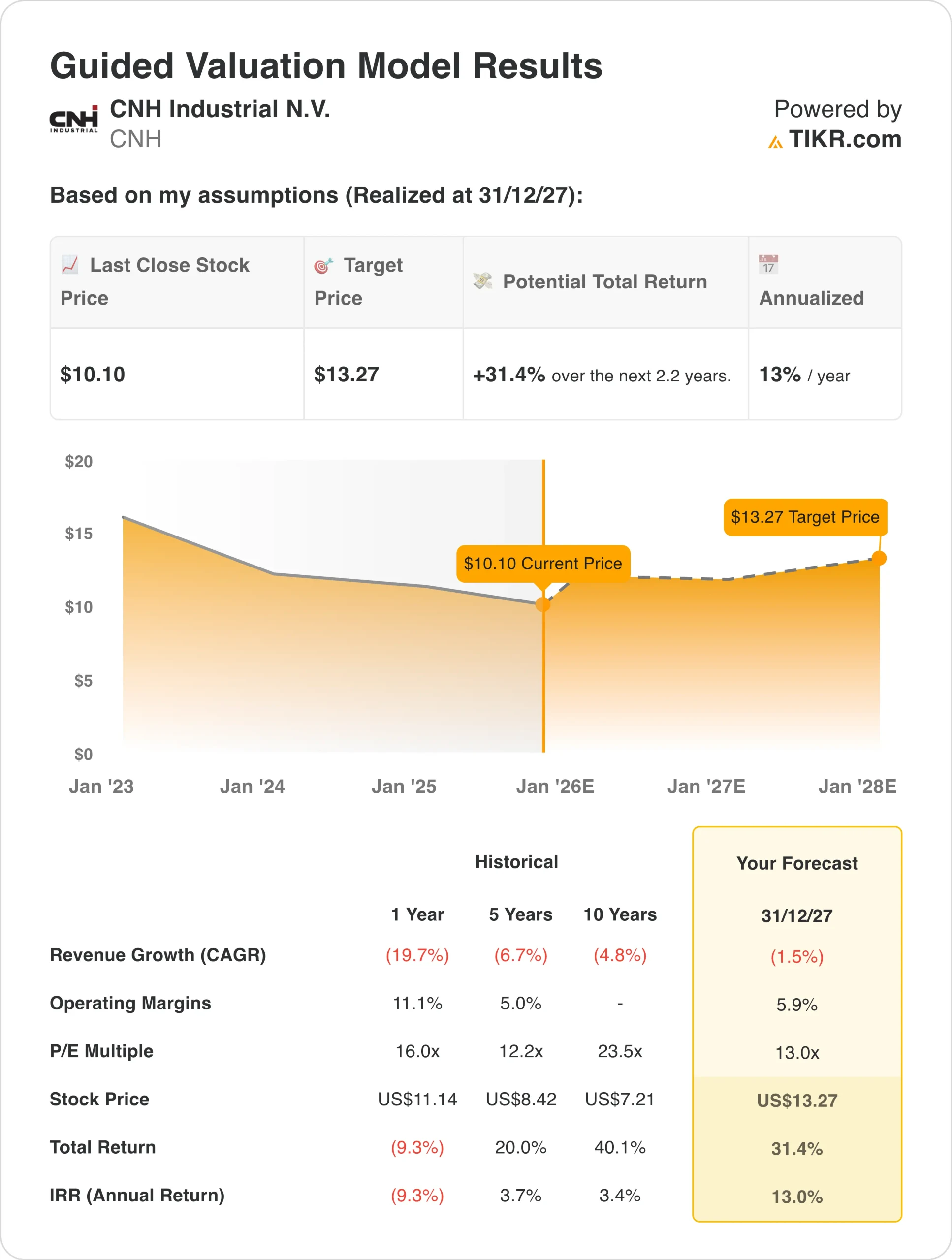 Value CNH stock with TIKR’s Valuation Model today for FREE (Find undervalued stocks fast) >>>