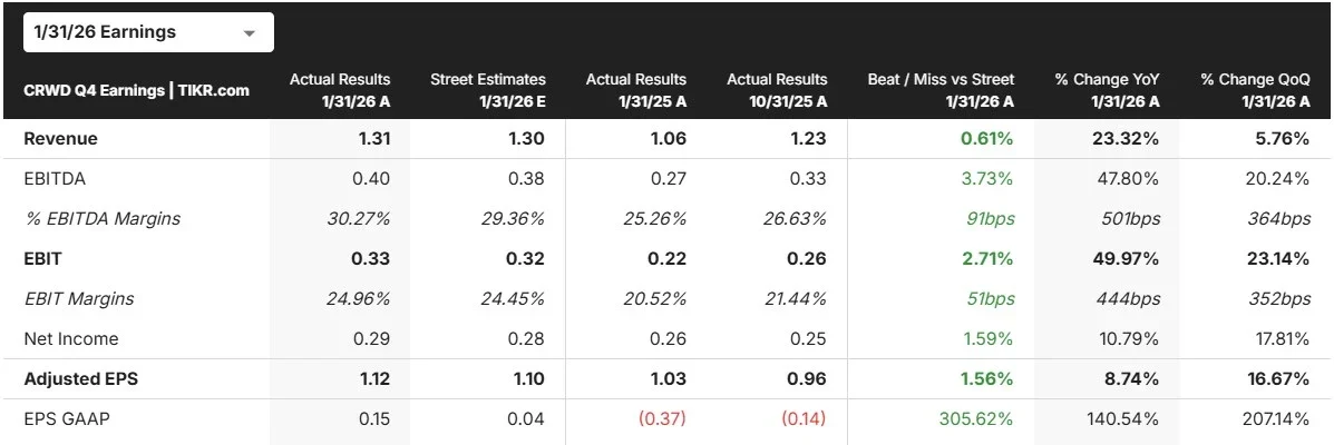 CrowdStrike (CRWD) stock edged lower on Tuesday despite reporting Q4 results that beat analyst expectations across the board.