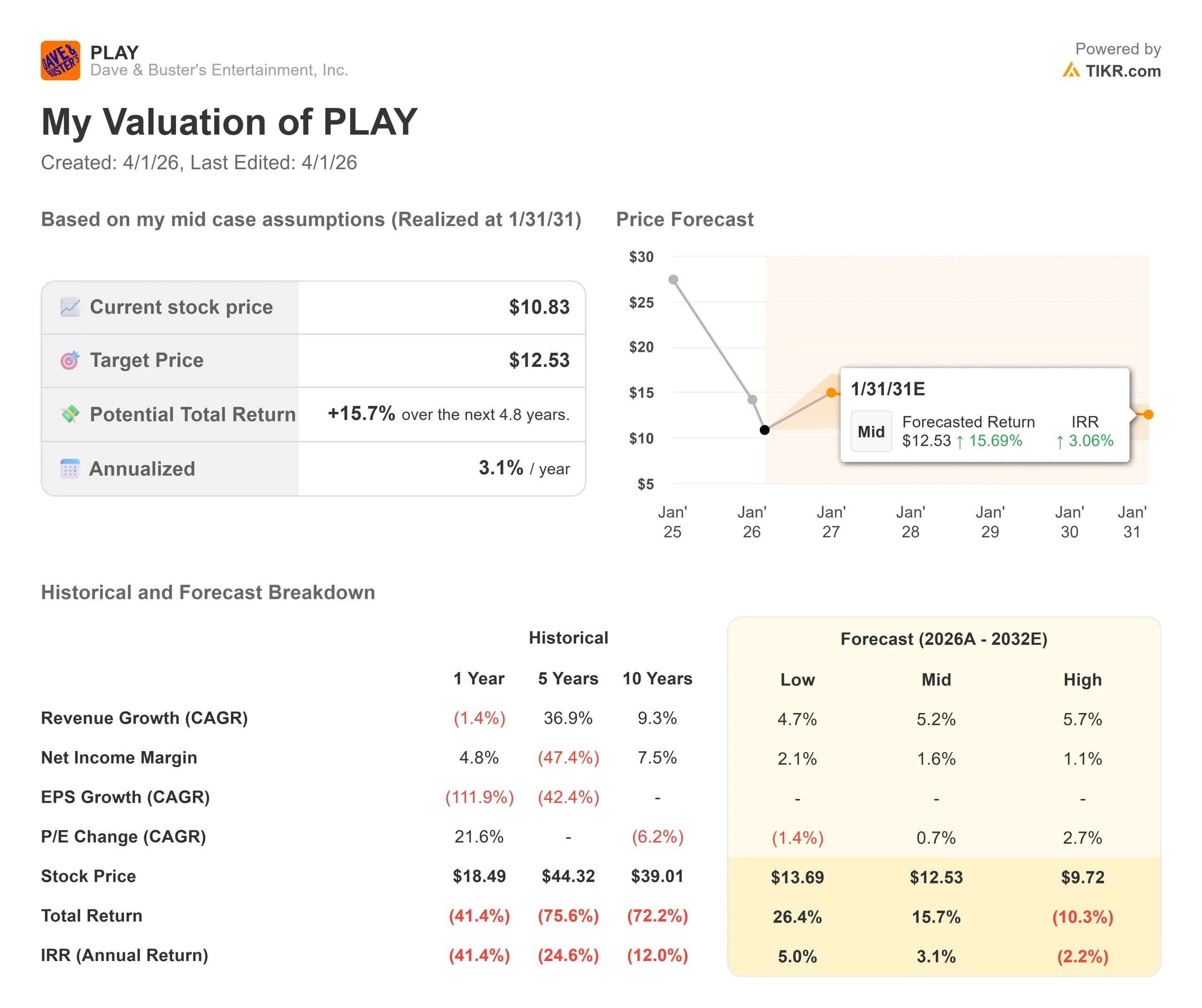 - $PLAY Stock Price as of Mar. 31: $11