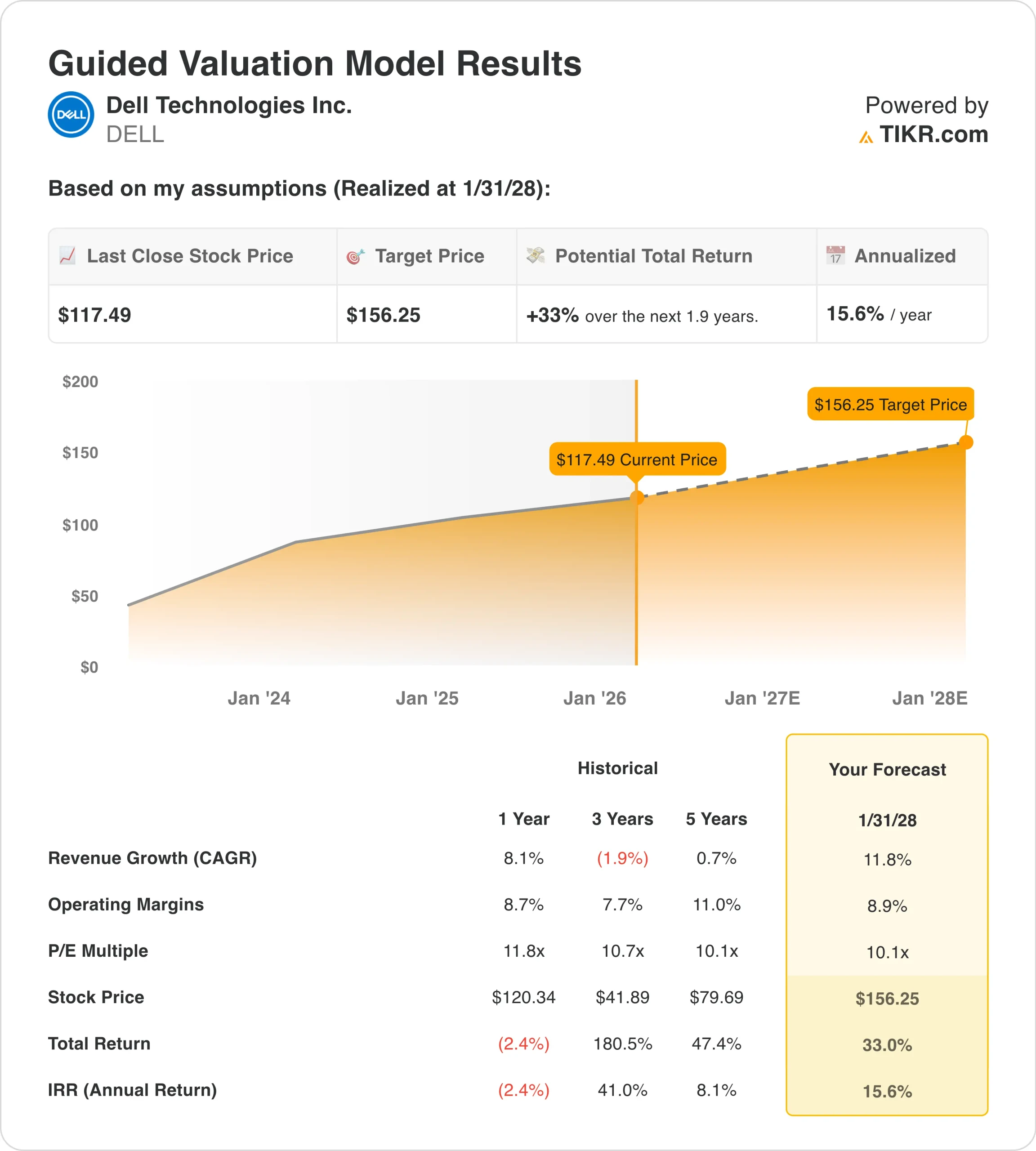 Value your favorite stocks like DELL with 5 years of analysts’ forecasts using TIKR’s new Valuation Model (It’s free) >>>