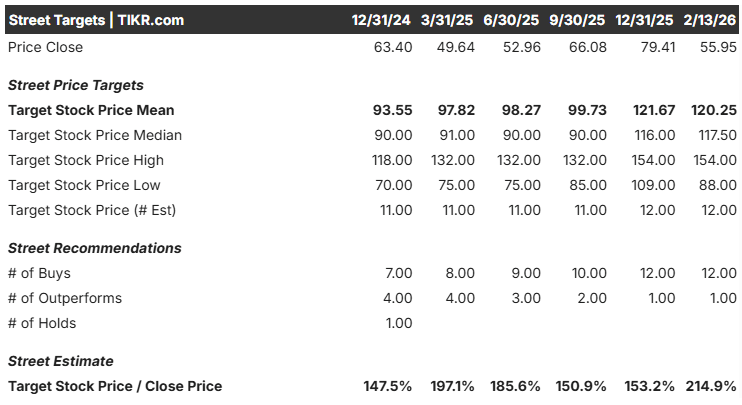 While the market is panicking, Wall Street analysts are holding the line. The Street Consensus Target currently stands at $120, implying 102% upside from current levels.