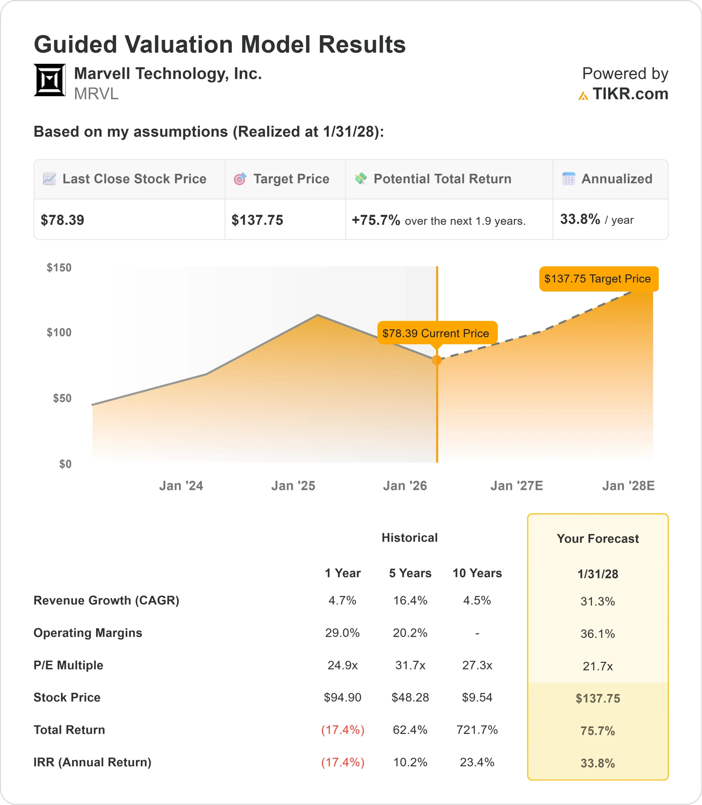 - Price Projection: Based on current execution, MRVL stock could reach $138 by January 2028.