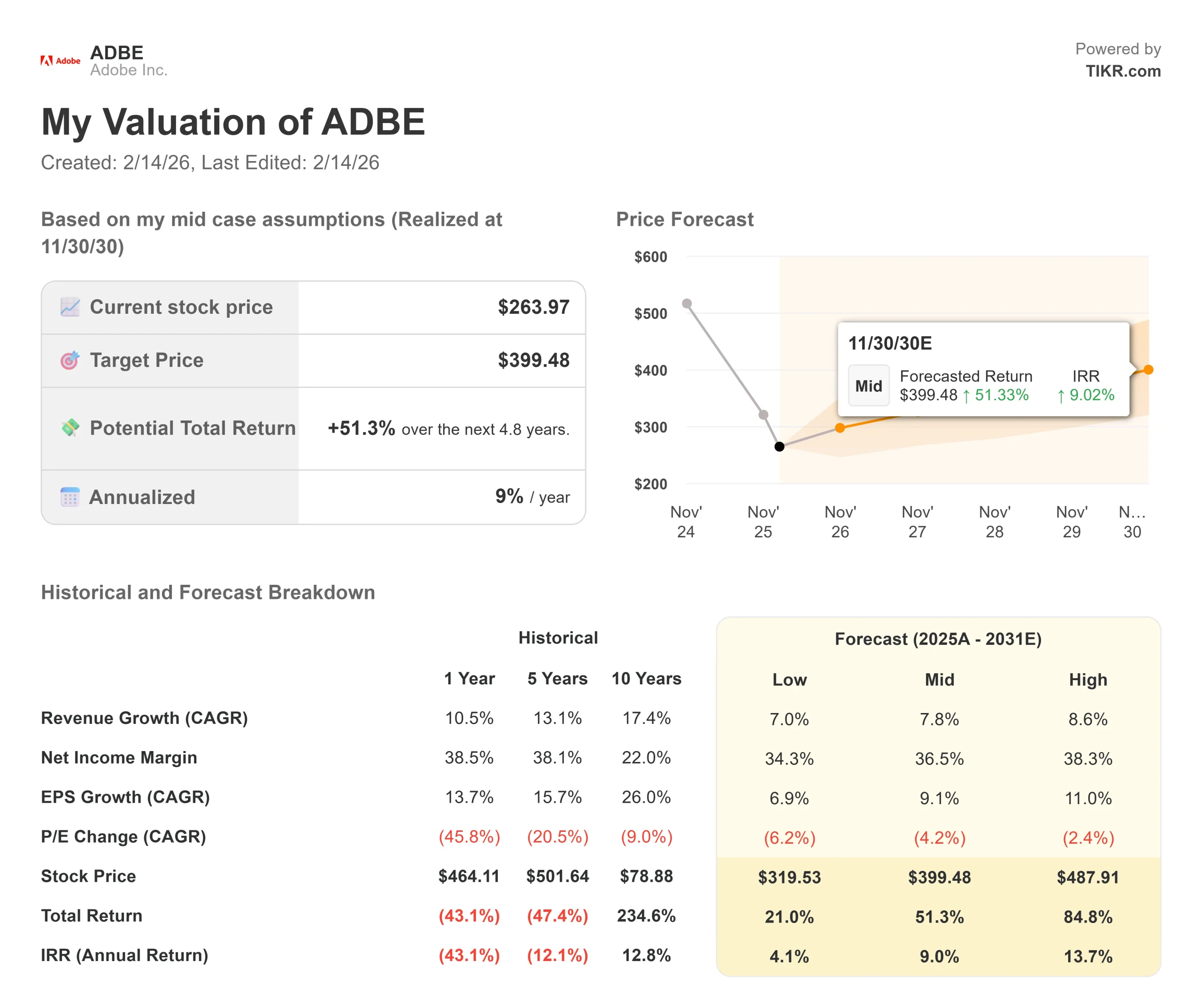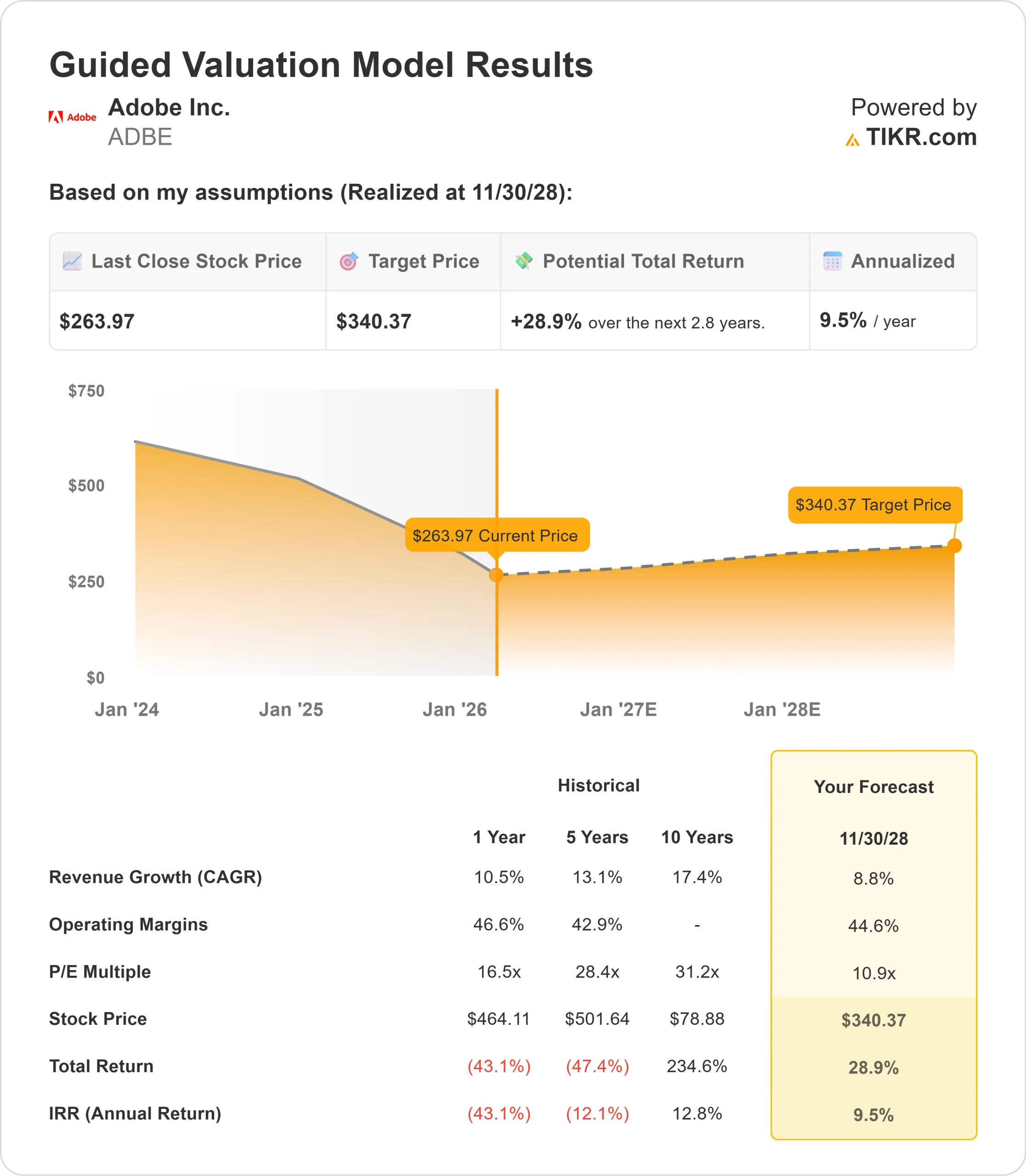 - Price Projection: Based on current execution, ADBE could reach $340 by November 2028