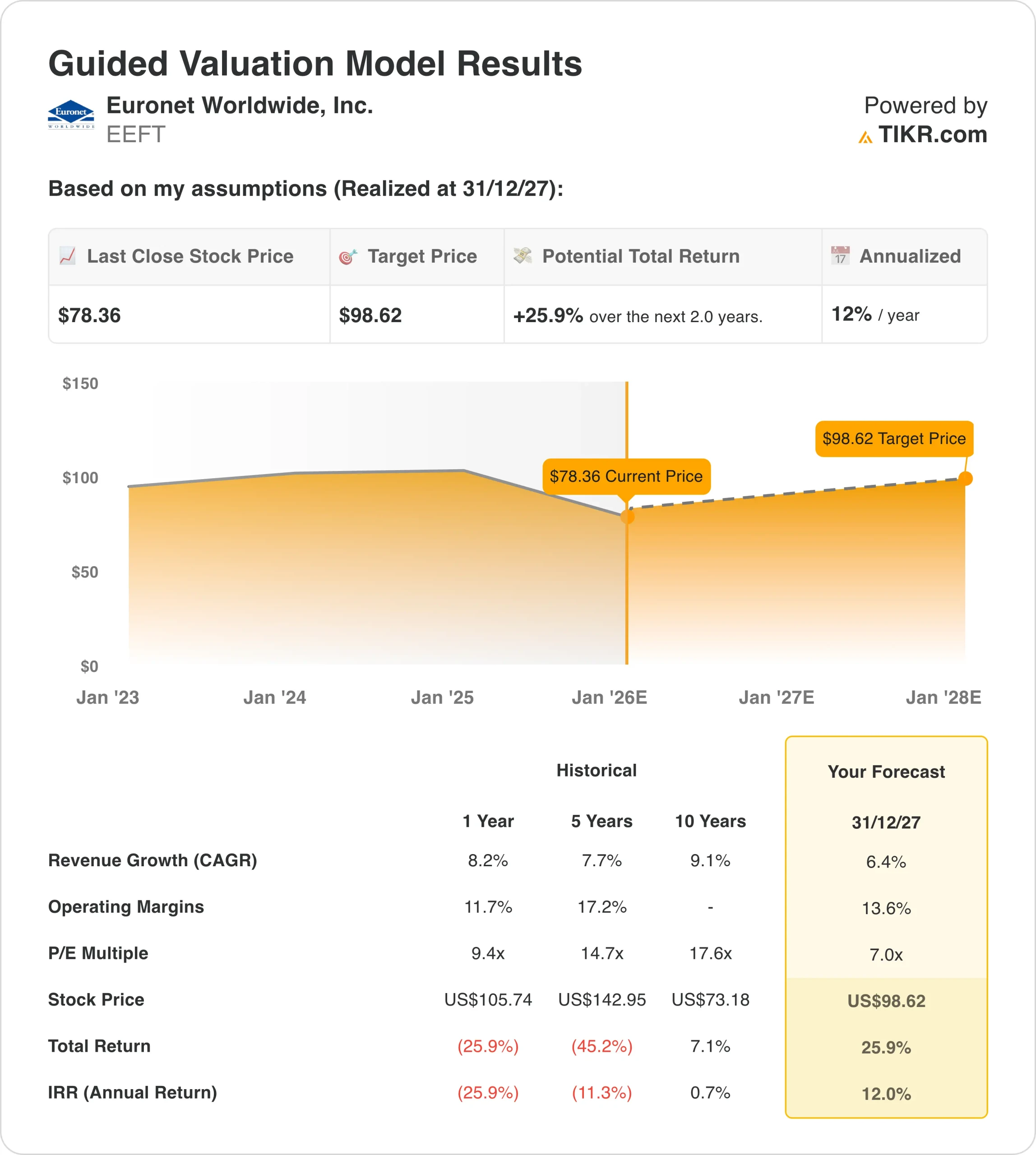 - Price Target: Current trends suggest EEFT stock could hit $98.62 by late 2027.