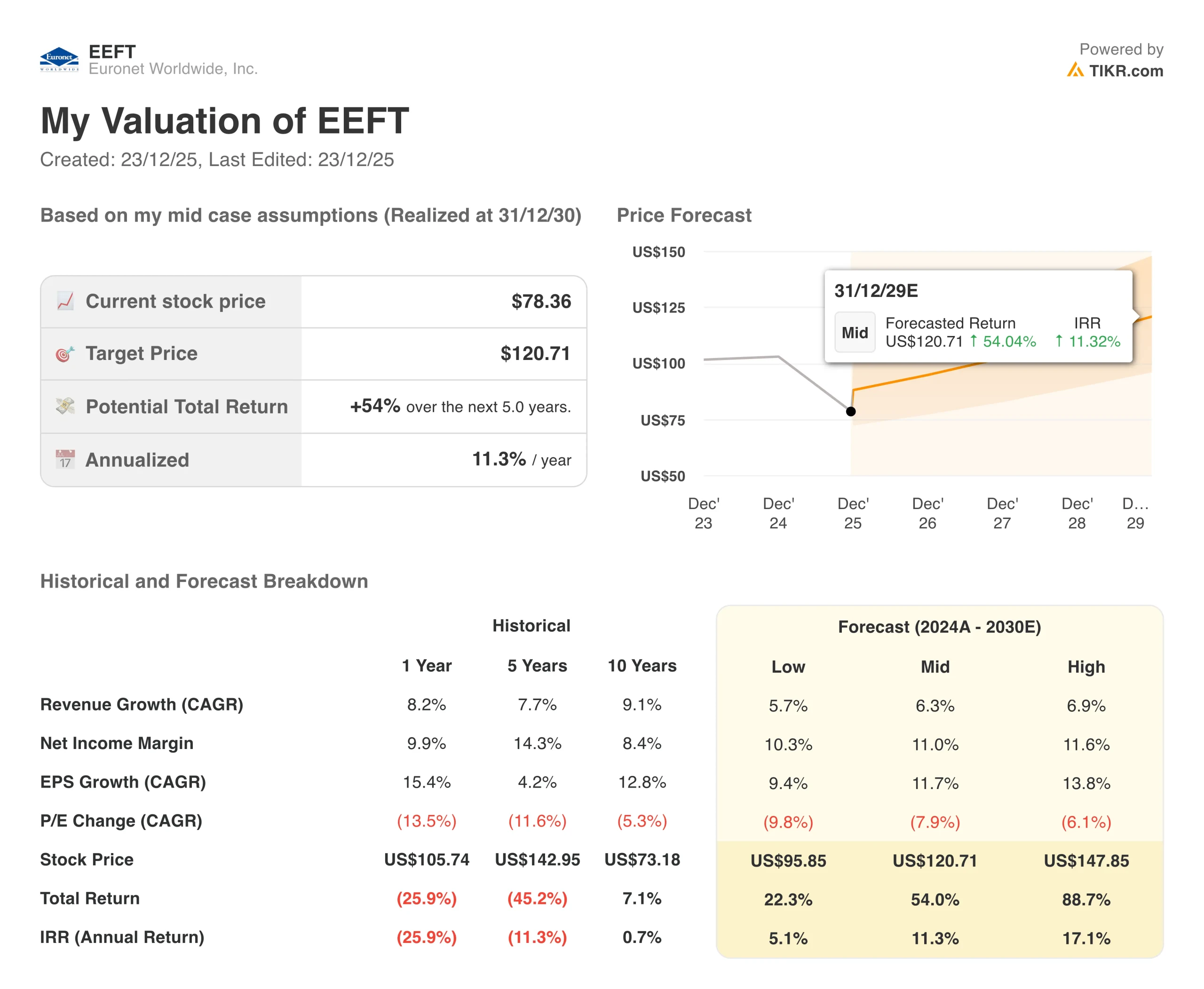 Here’s what we used for EEFT stock: