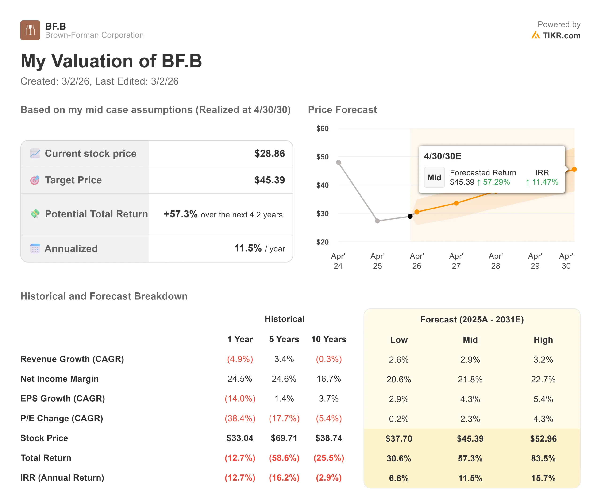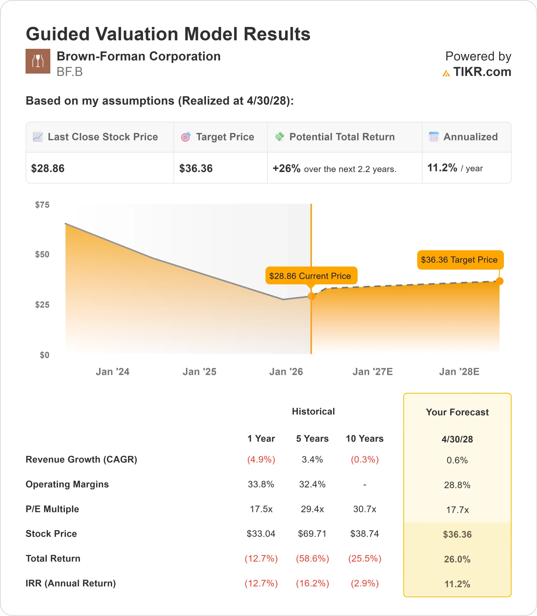 - Price Projection: Based on current execution, BF.B stock could reach $36 by April 2028.