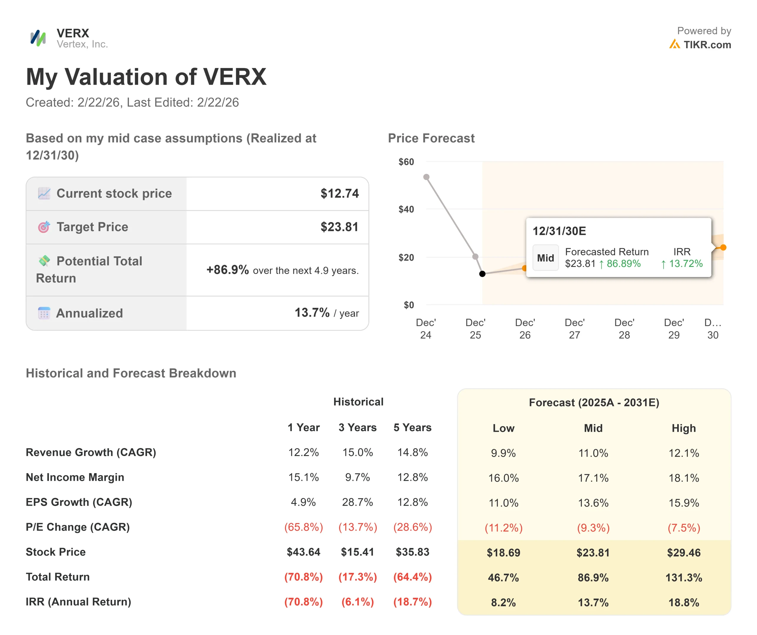 Here’s what we used for VERX stock: