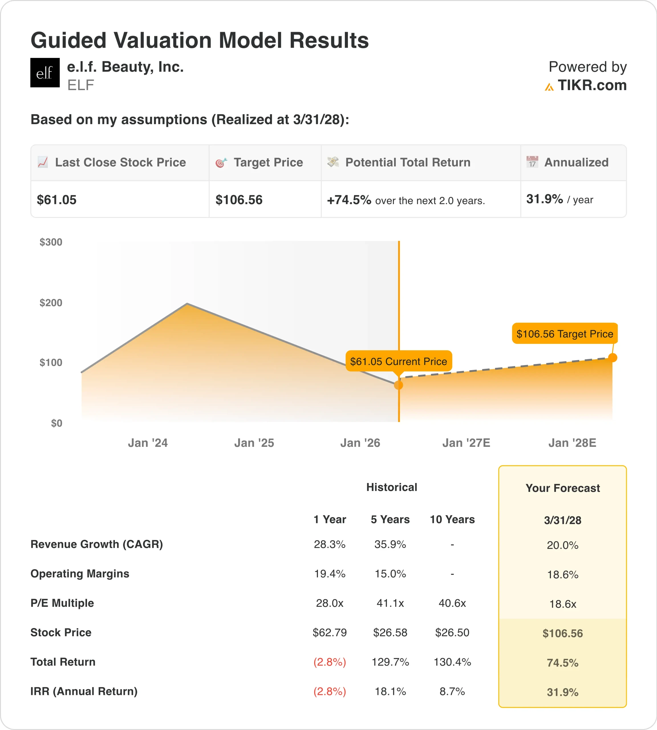 Value your favorite stocks like ELF with 5 years of analysts’ forecasts using TIKR’s new Valuation Model (It’s free) >>>