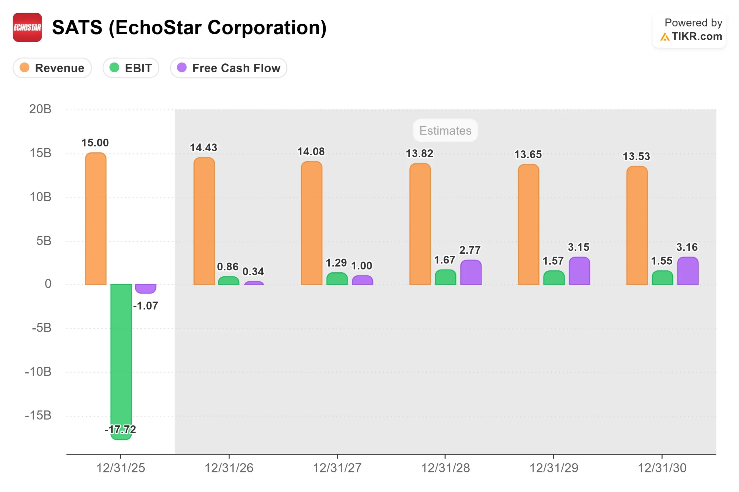 Last month, EchoStar reported roughly $584 million in adjusted EBITDA for Q4, beating estimates by about 60%.