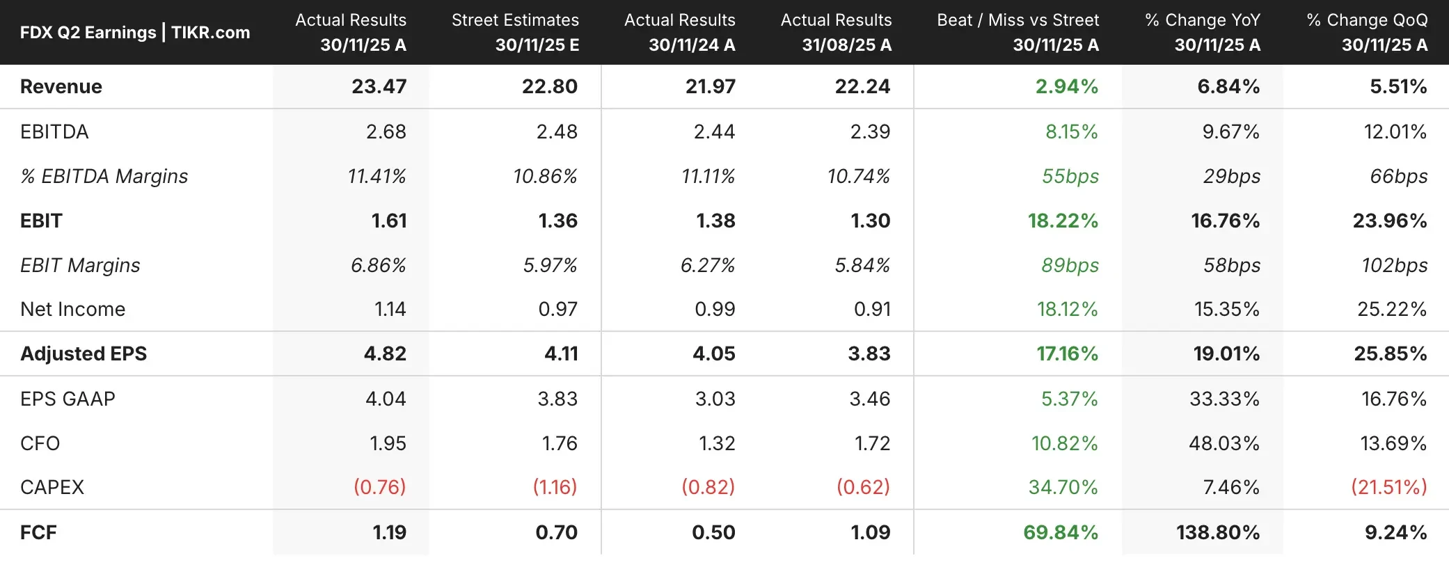 FedEx Express, the company’s largest segment, grew revenue 8% year-over-year and saw operating income jump 24%.