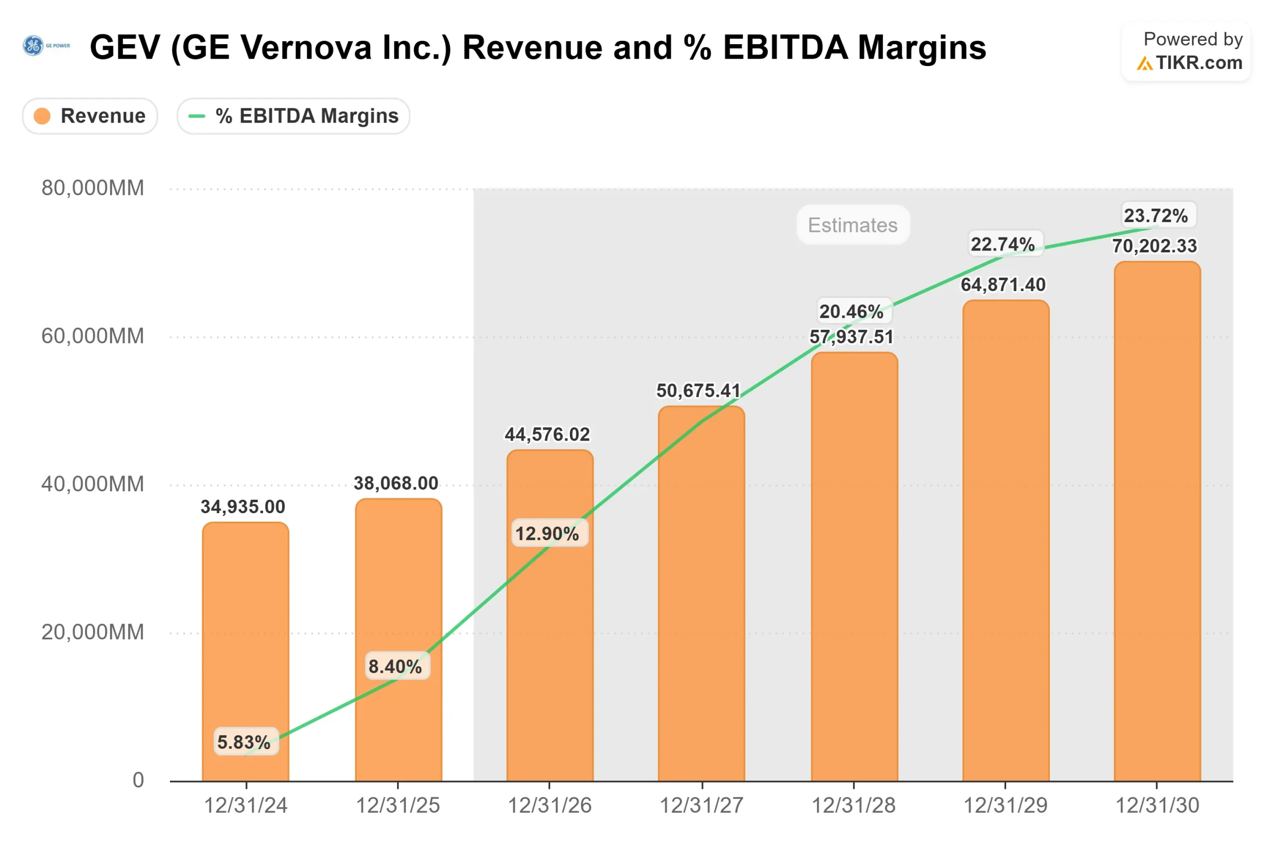 Pull up GE Vernova, and you’ll see years of historical financials, what Wall Street analysts expect for revenue and earnings in the quarters ahead, how valuation multiples have moved over time, and whether price targets are trending up or down.