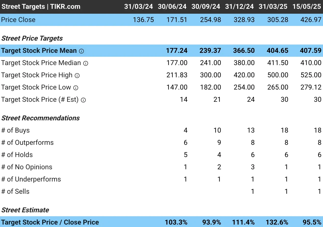 - That’s a potential 31% upside from today’s price of $427 per share.
