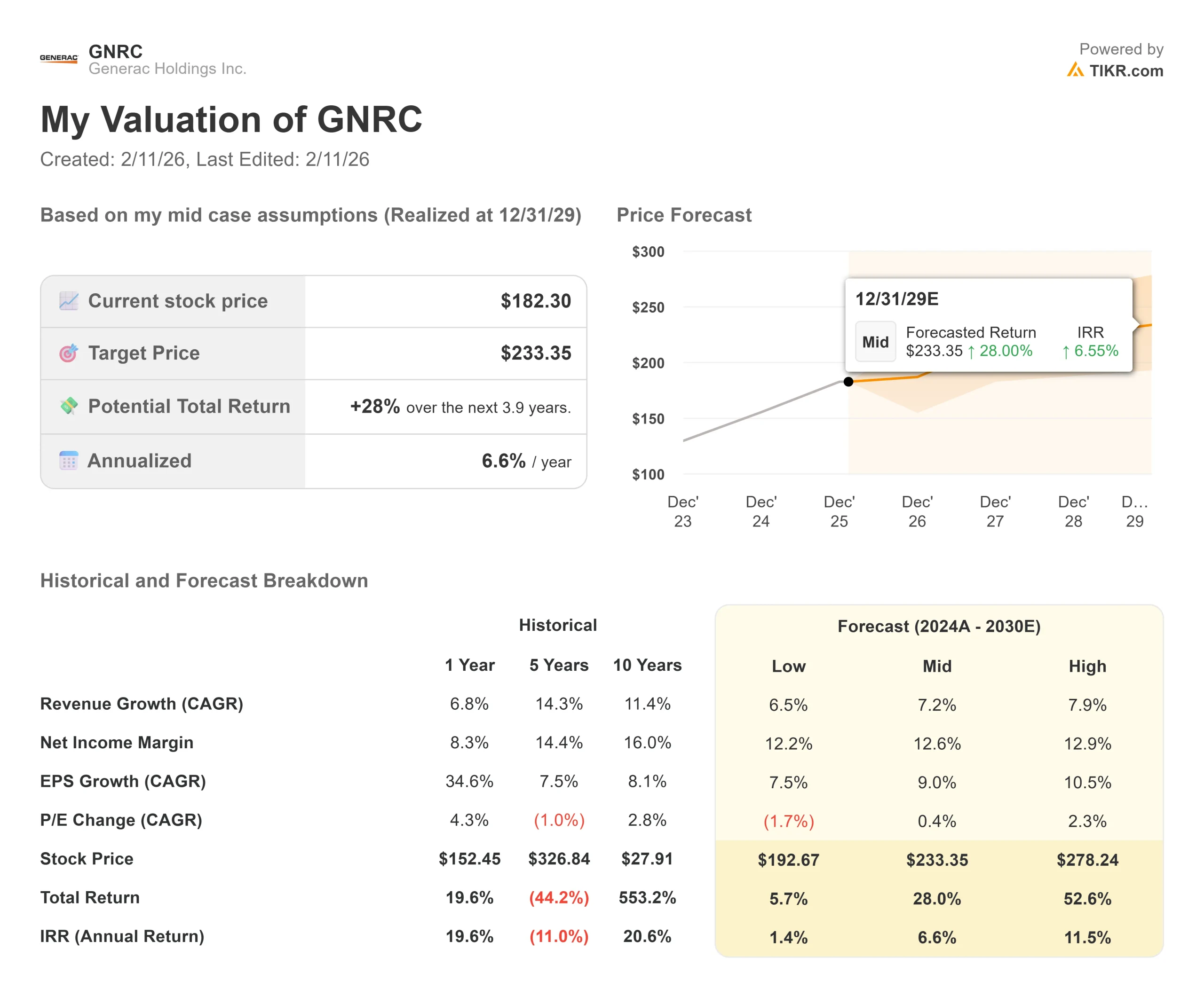 - TIKR Model Target: $233
