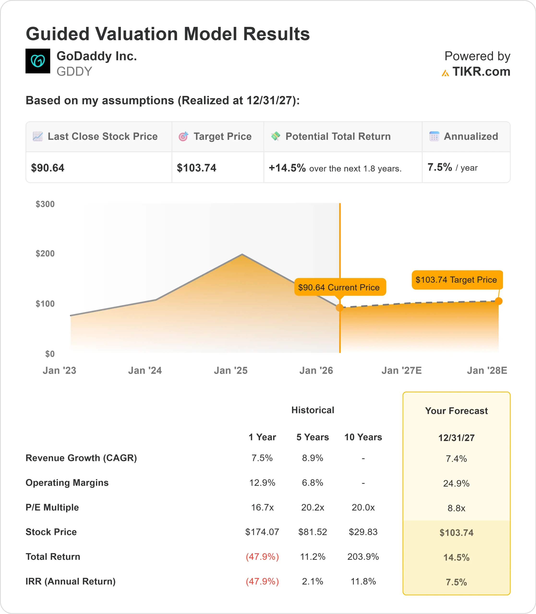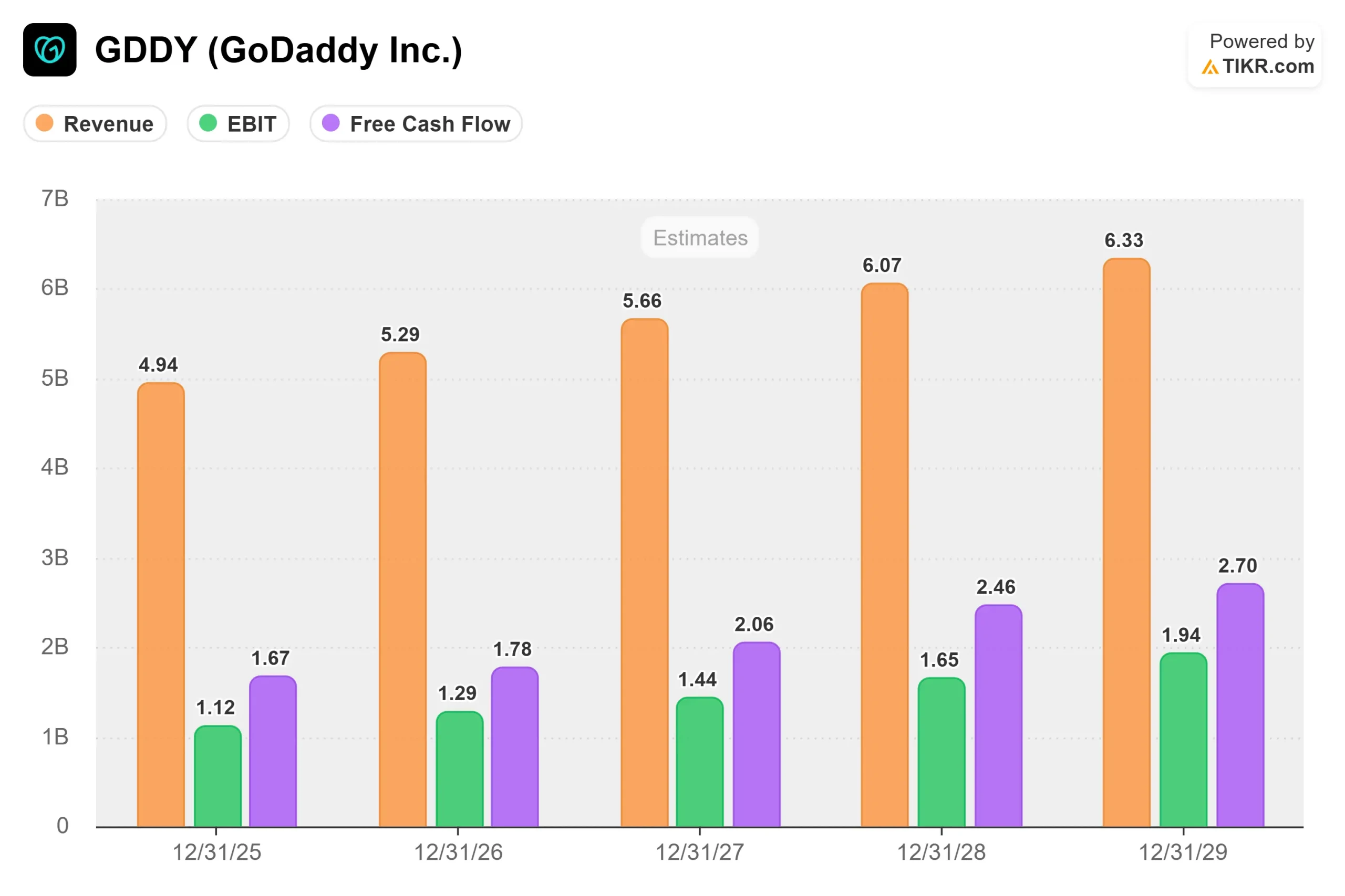 Also monitor whether GoDaddy can maintain EBITDA margins of 32%+ while scaling AI investments.