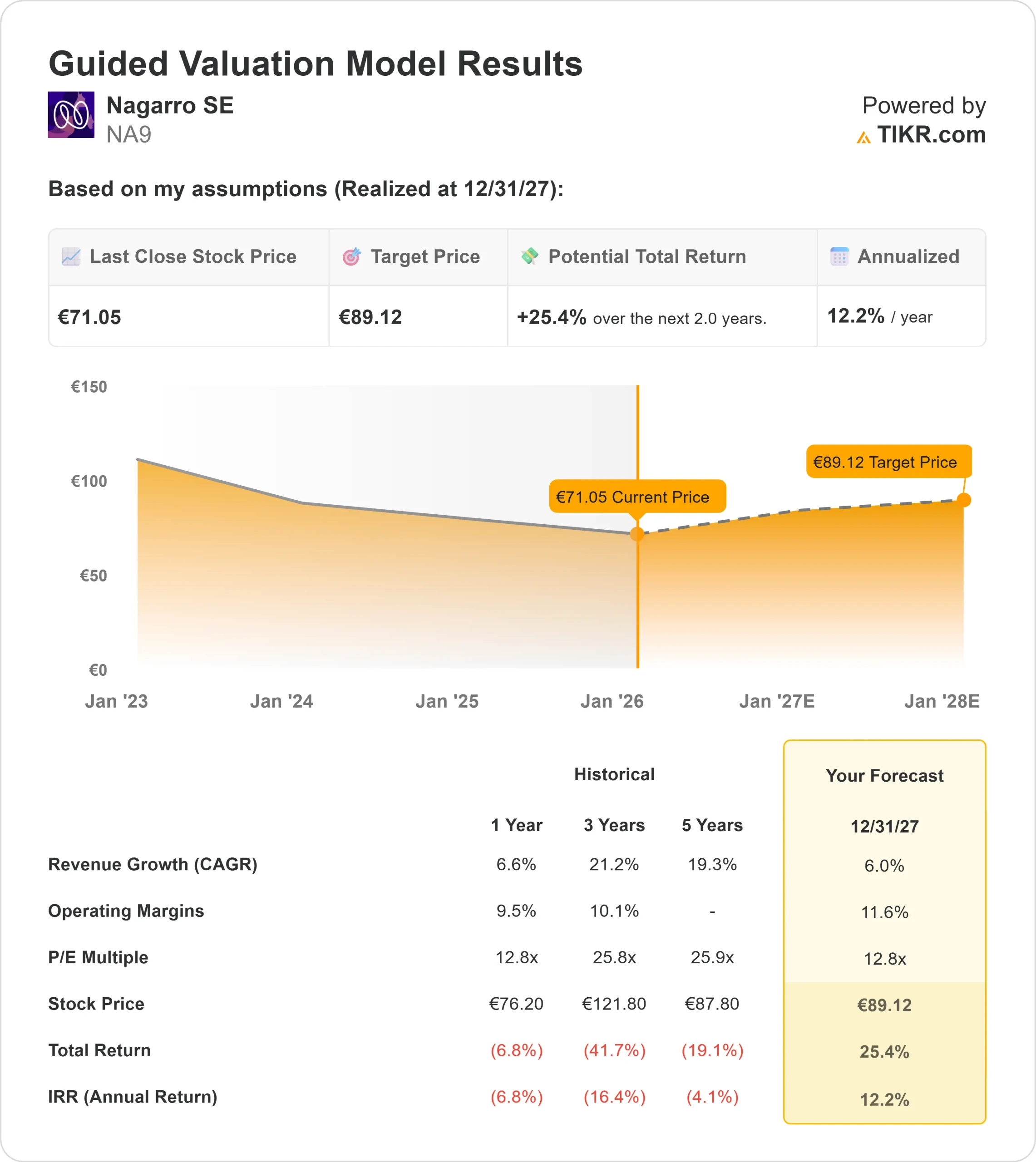 - Price Projection: Our model projects the stock could climb to €89 per share by December 2027.