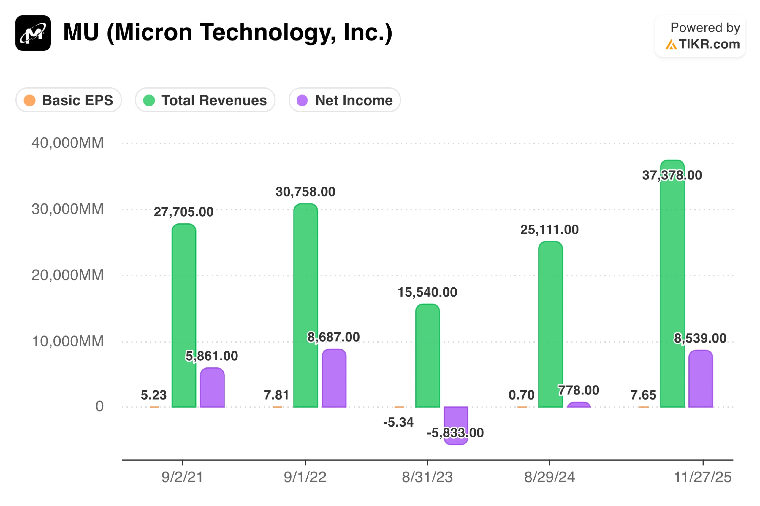 TIKR tip: Pull earnings per share data across multiple years in TIKR’s Detailed Financials and calculate the average yourself. Comparing this normalized figure to the current stock price provides a cycle-adjusted valuation that trailing multiples cannot offer.