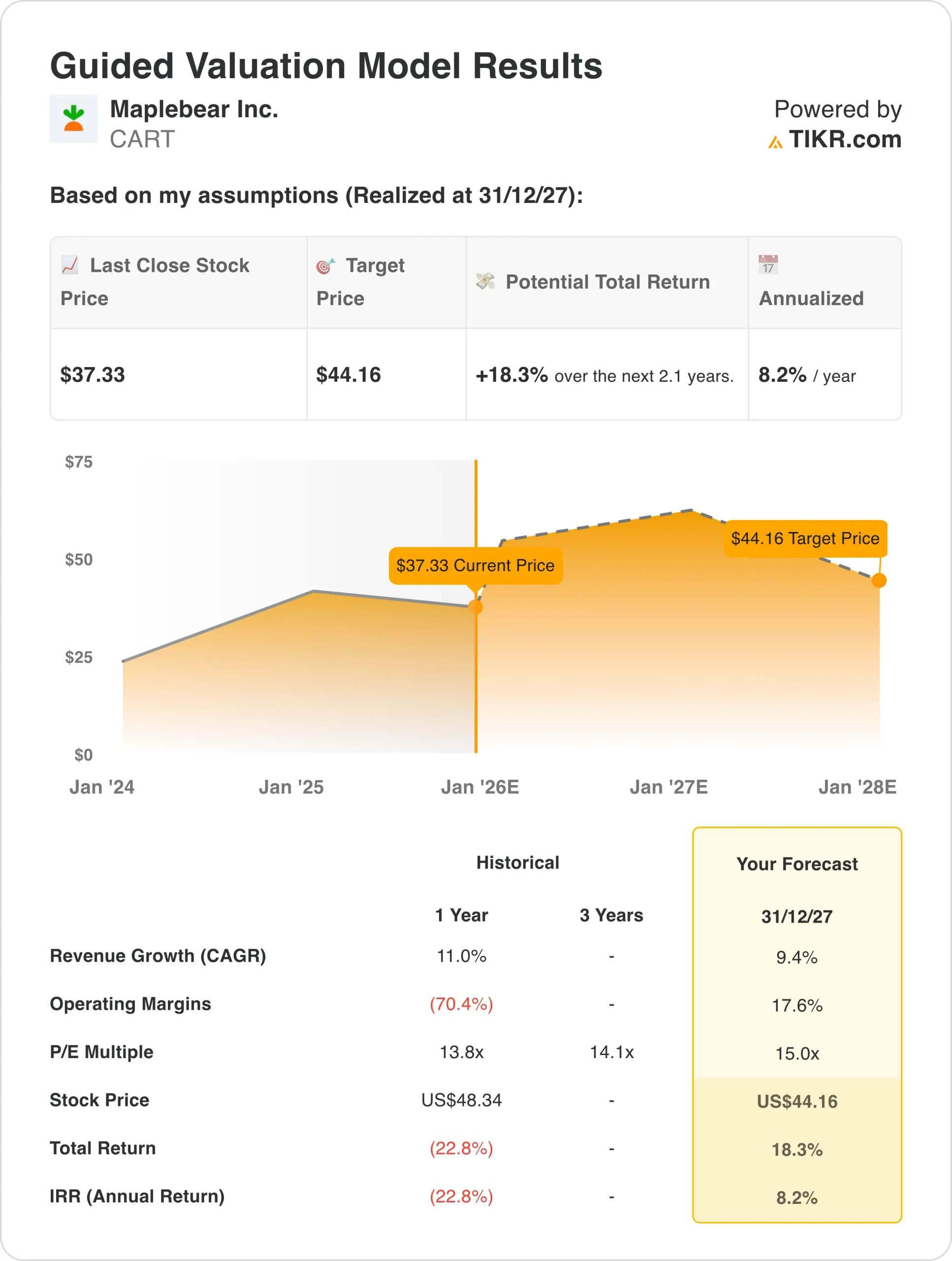 With TIKR’s new Valuation Model tool, you can estimate a stock’s potential share price in under a minute.