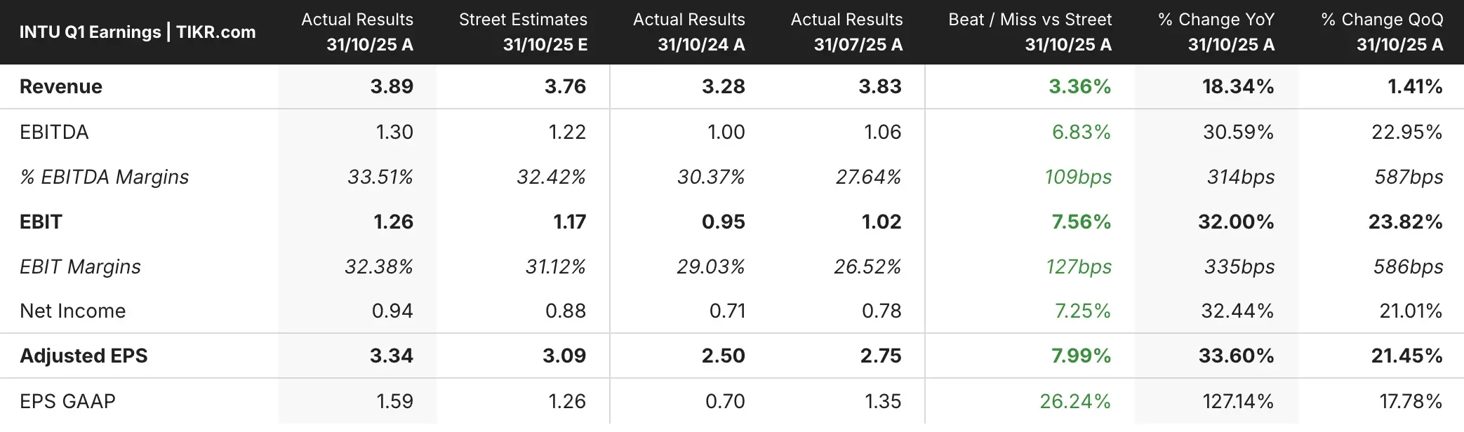The strong performance was driven by exceptional momentum across Intuit’s platform. Total revenue grew 18% year-over-year, with the Global Business Solutions Group (which includes QuickBooks) growing at the same pace. Credit Karma revenue jumped 27%, while TurboTax revenue increased 6%.