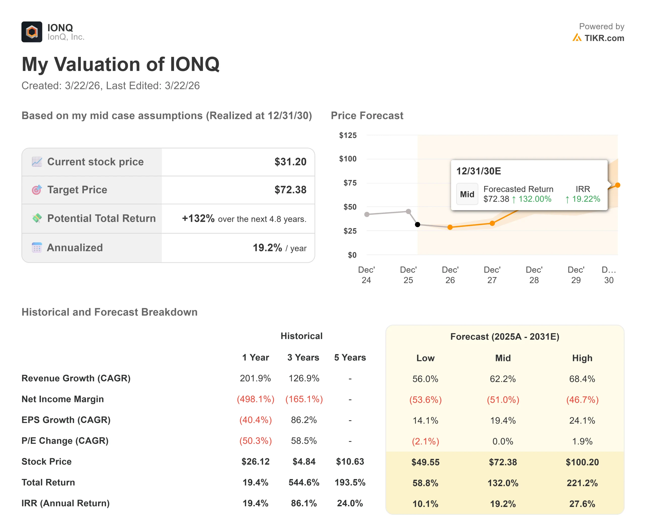 Pull up IonQ, and you’ll see years of historical financials, what Wall Street analysts expect for revenue and earnings in the quarters ahead, how valuation multiples have moved over time, and whether price targets are trending up or down.