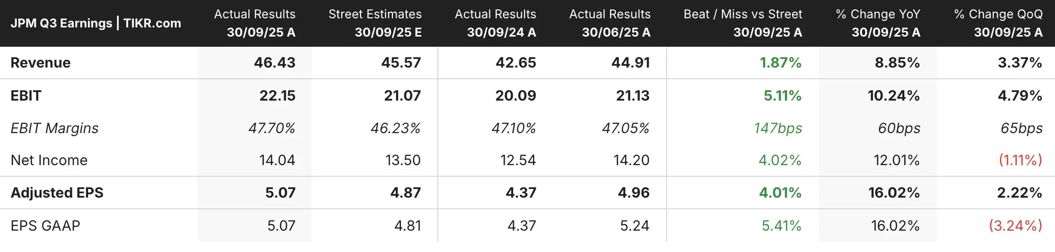 Revenue hit $46.43 billion, nearly $1 billion ahead of what Wall Street expected, driven by a blowout trading performance and strong investment banking activity.