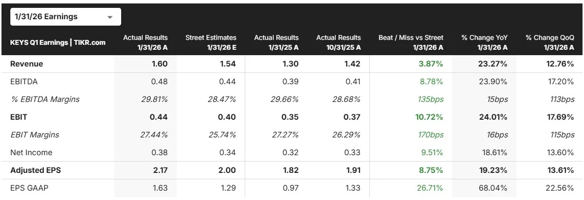 What really caught investors’ attention was the strength across Keysight’s business. The company posted record results driven by surging demand tied to AI infrastructure buildouts, defense modernization, and semiconductor innovation.