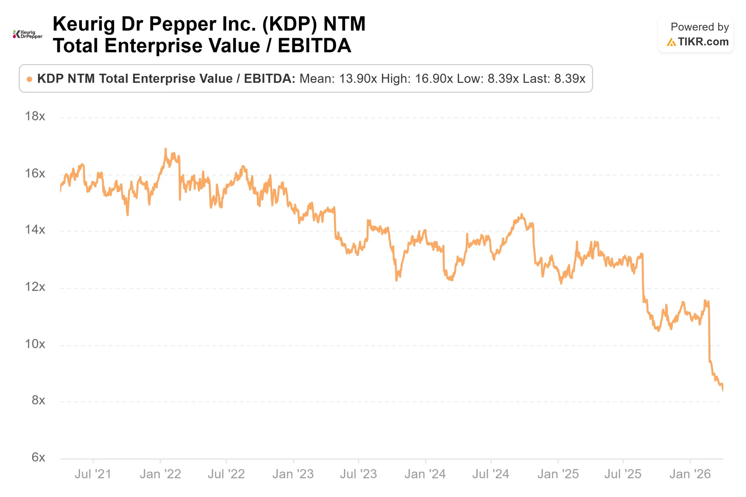 Conclusion: Watch North America’s personal care organic sales at the Q1 2026 report on April 28, 2026. If that segment sustains growth at or above 2%, it confirms the core business is gaining momentum independent of the deal outcomes. KMB carries real uncertainty at current levels, but at a 10.44x forward EBITDA multiple and a 5.4% yield, the market is already demanding a premium to hold it through the noise.