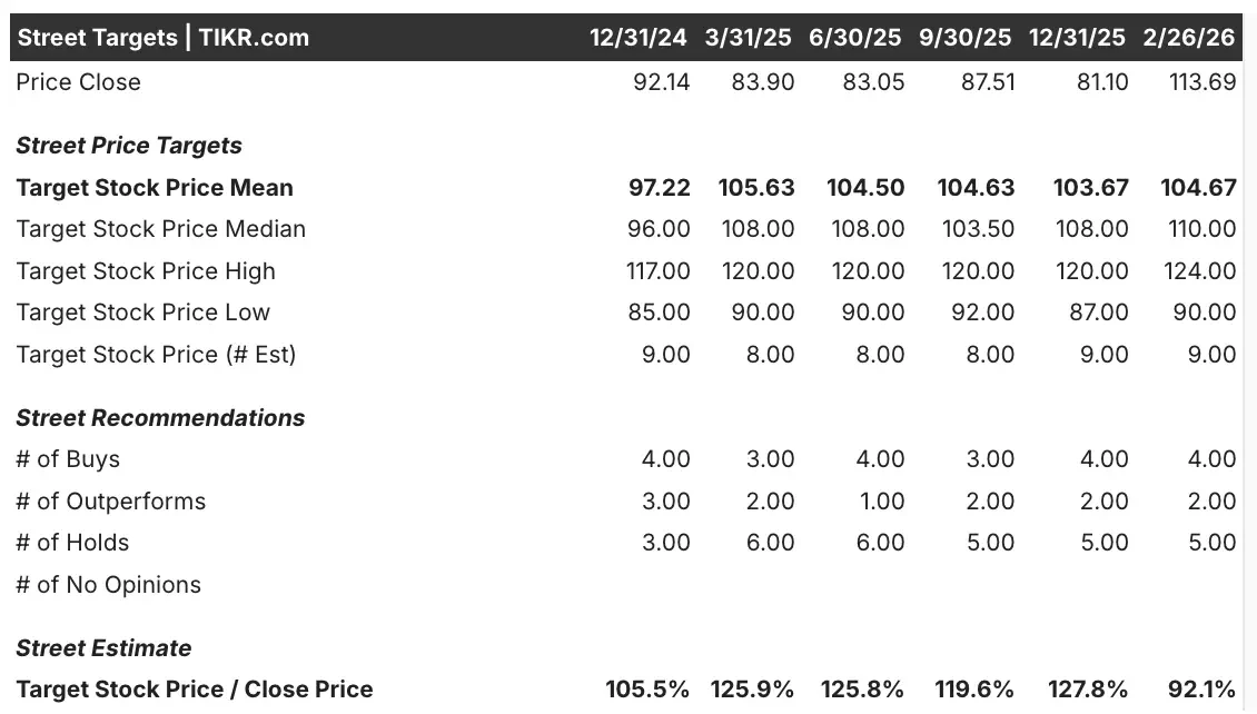 The company had announced it would release Q4 and full-year 2025 results on February 25. Investors reacted positively to both the revenue beat and the improved capital return. The stock closed near its 52-week high of $115.33.