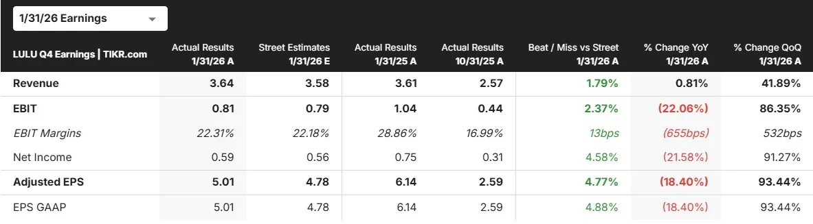 Lululemon (LULU) stock slipped after the company reported its Q4 results and issued a cautious outlook for 2026.
