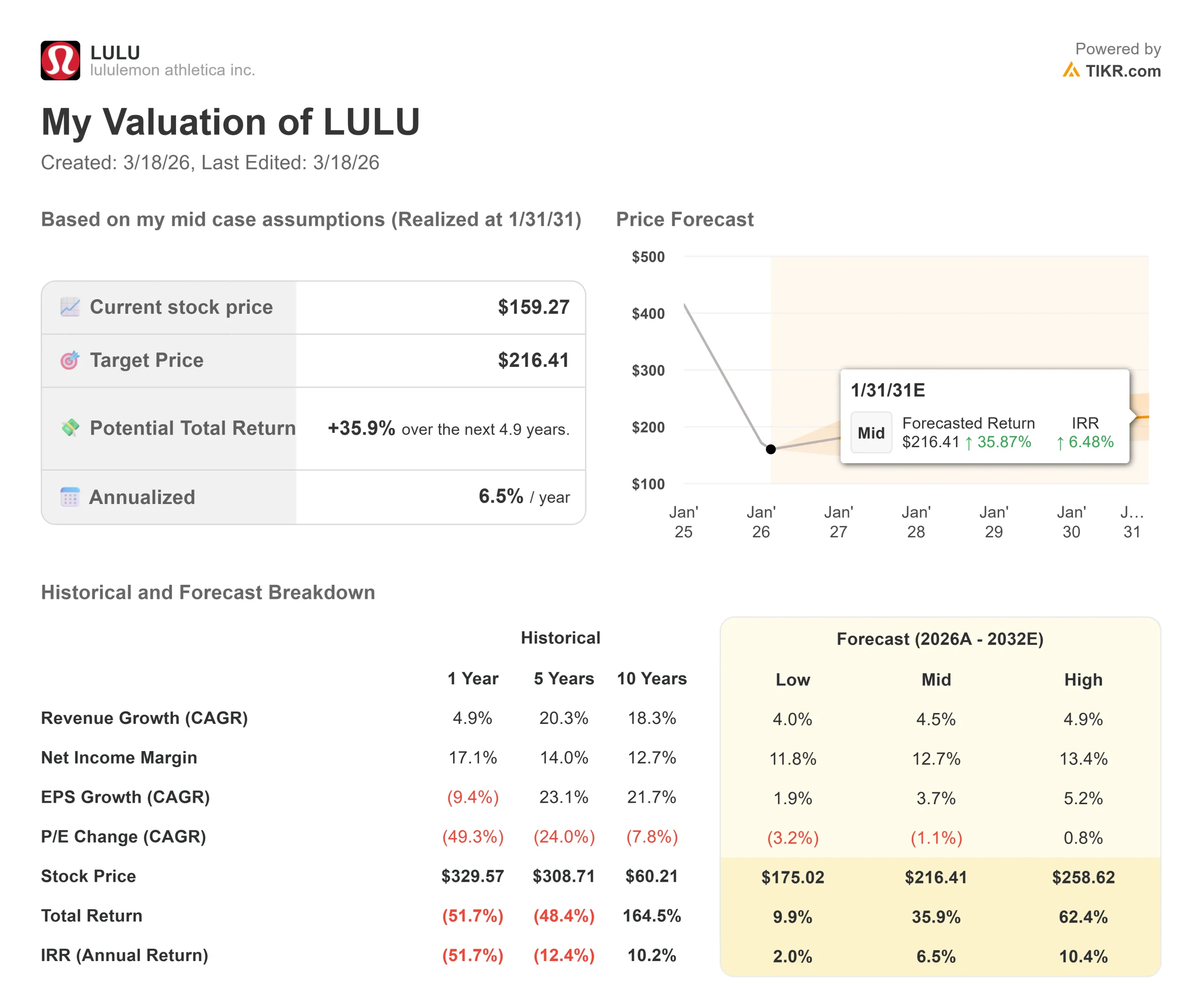 - $LULU Share Price as of Mar. 17: $159