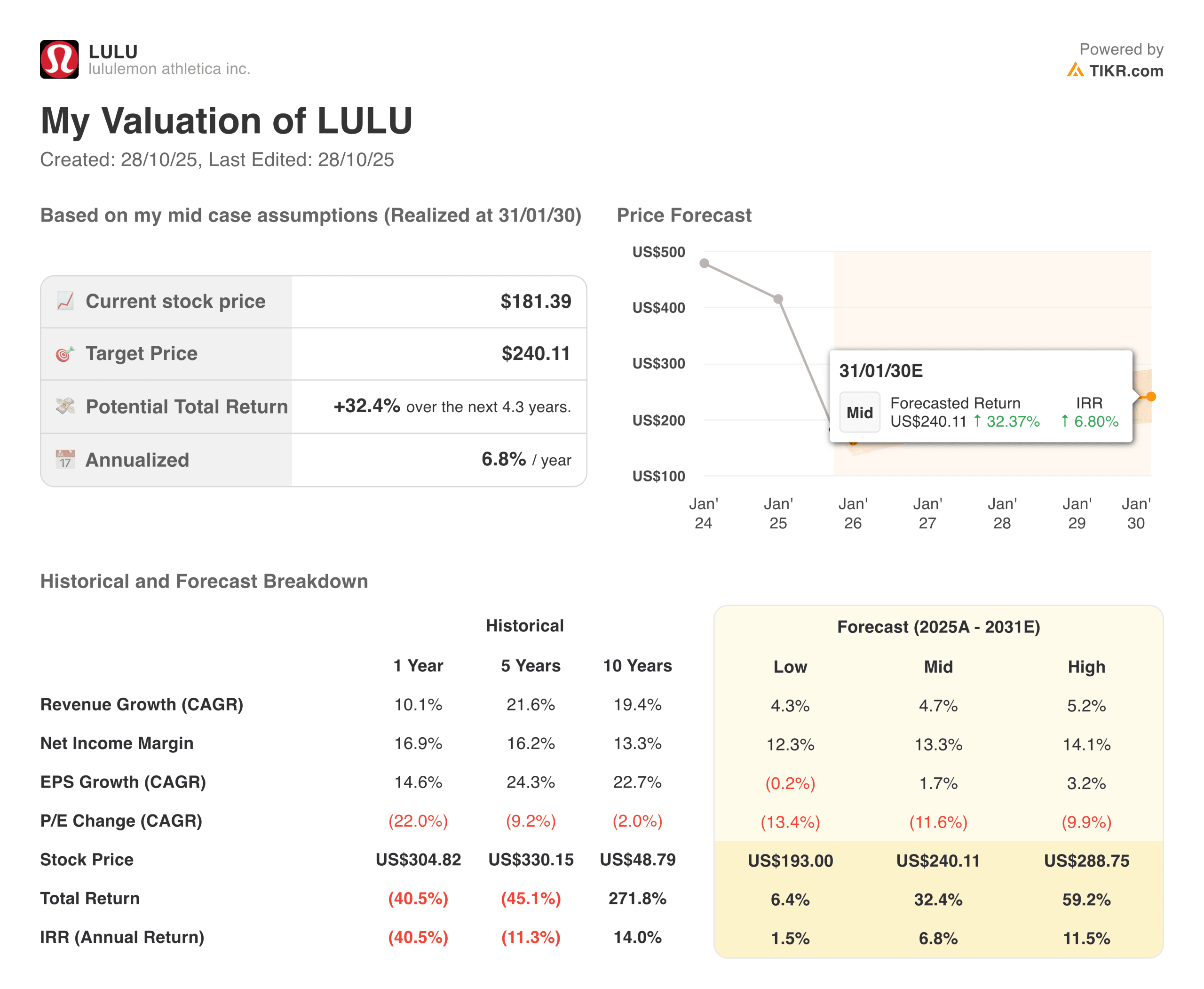 - Current Share Price as of Oct. 27: $181