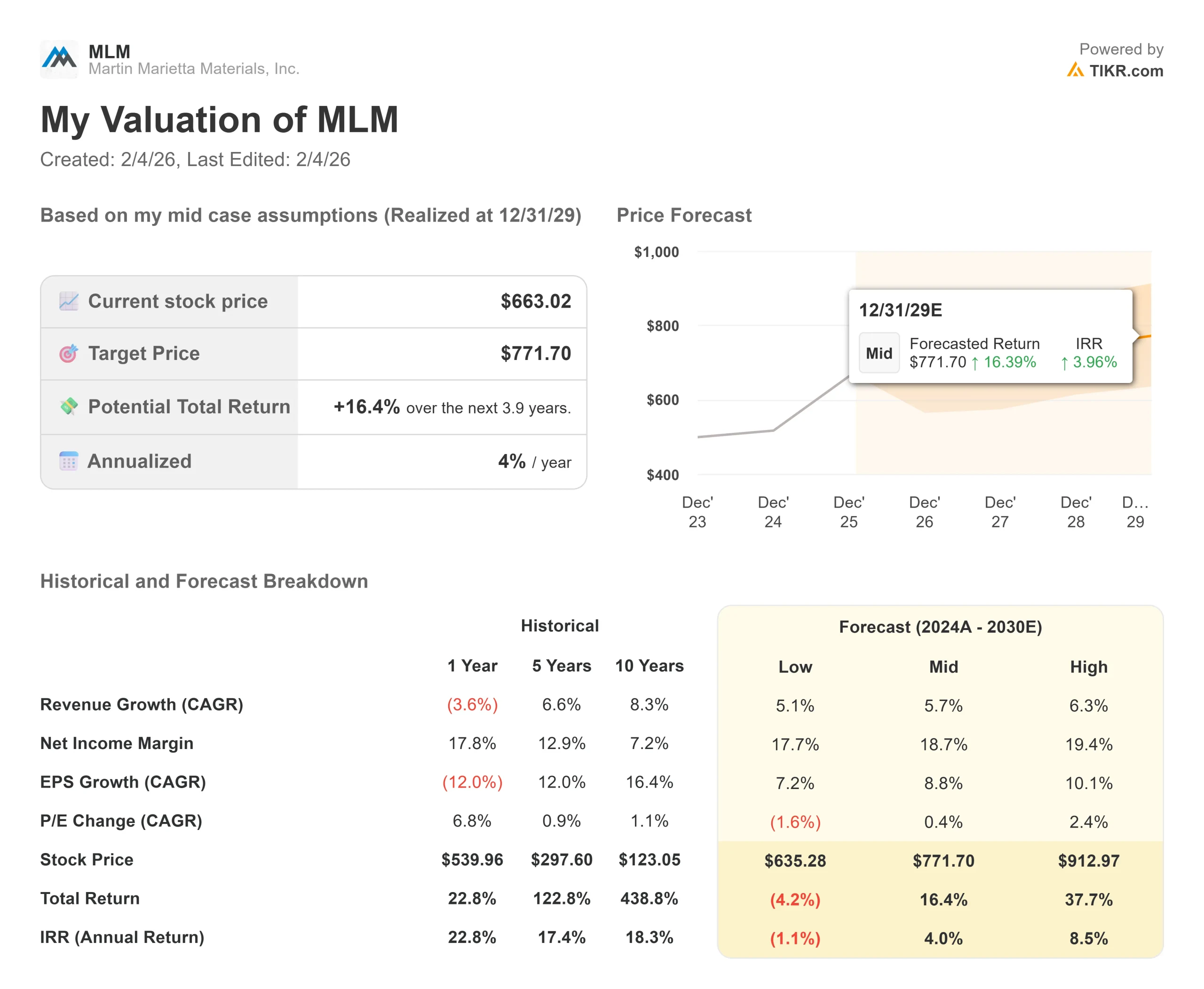 Conclusion: The infrastructure giant is engineered for a 2026 breakout. With a 16.4% upside potential and a model pointing to $772, Martin Marietta stock offers a resilient mix of record pricing power and massive infrastructure tailwinds through 2026.