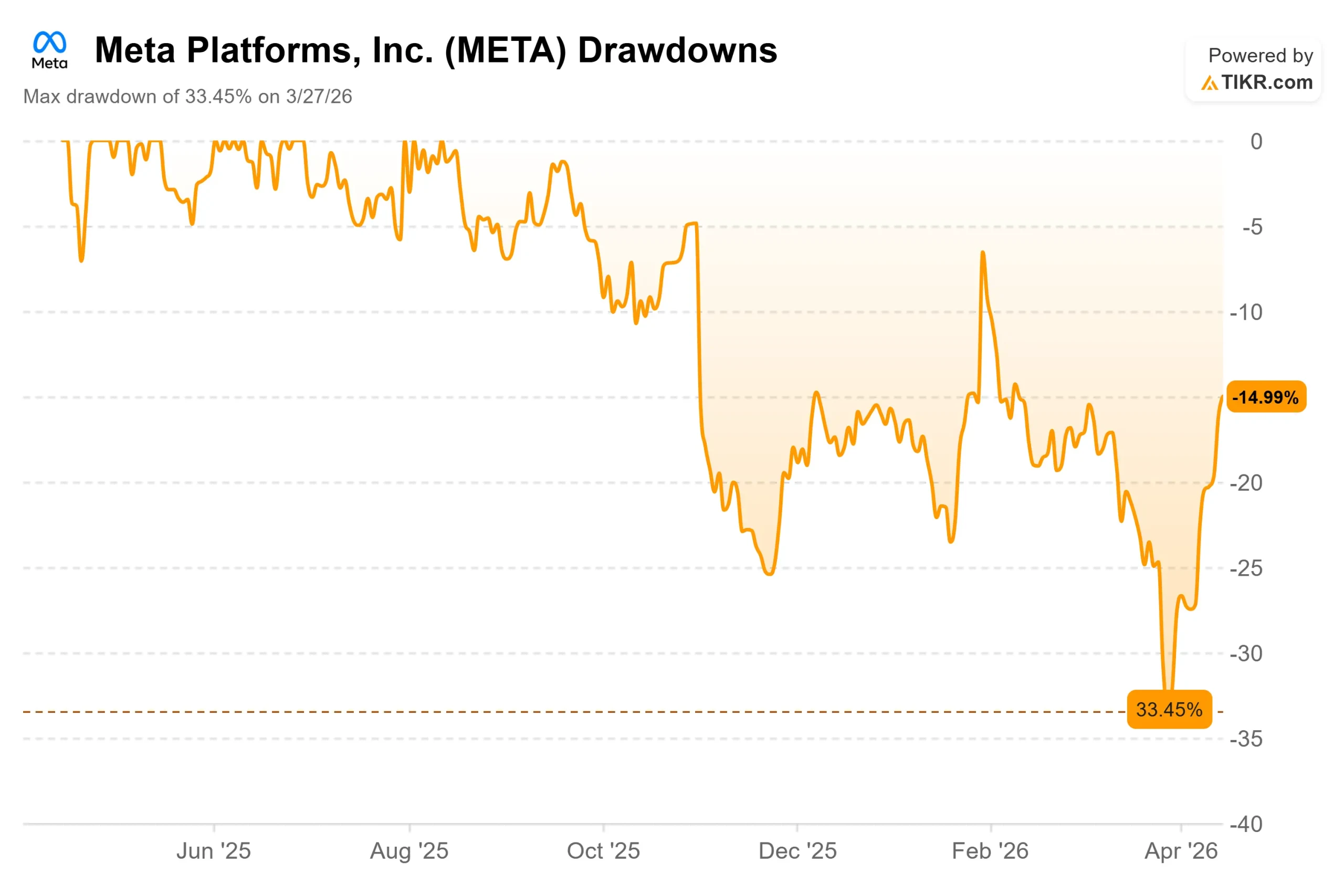 Meta Platforms (META) has had one of the more volatile stretches of any mega-cap in recent memory, and the market is split on what it means. The stock sits at $671.58, still 16% below its 52-week high of $796.25, after a max drawdown of 33.45% through March 27.