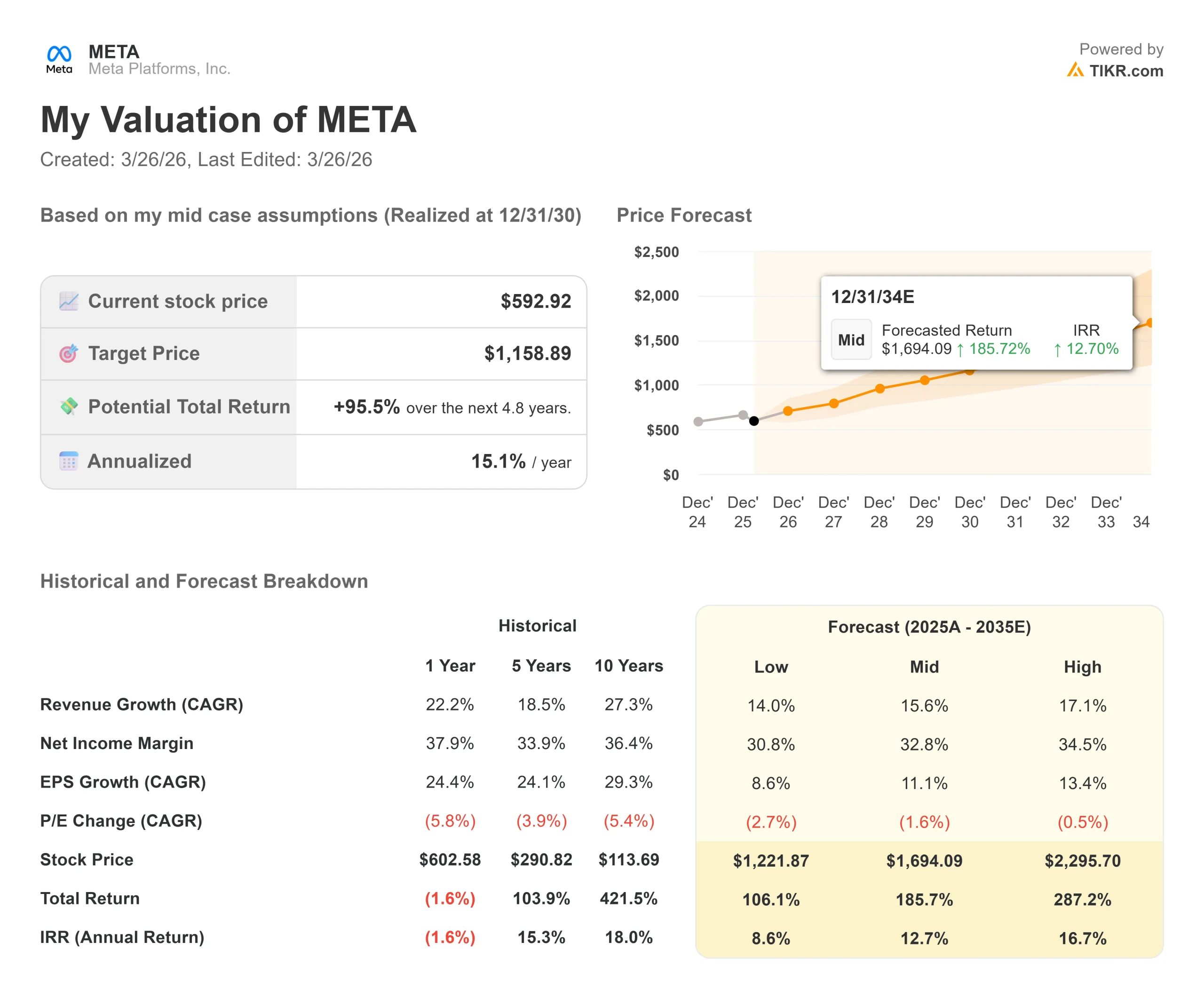 Pull up Meta, and you’ll see years of historical financials, what Wall Street analysts expect for revenue and earnings in the quarters ahead, how valuation multiples have moved over time, and whether price targets are trending up or down.